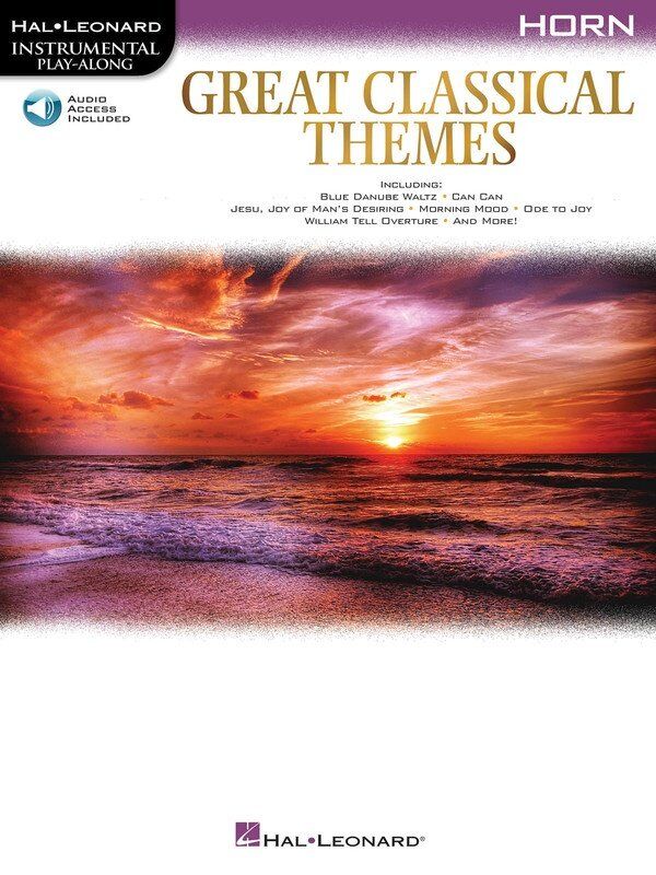 15 timeless and familiar classical themes in arrangements perfect for budding instrumentalists. It features online access to audio demonstration and backing tracks for download or streaming to help you hear how the song should sound then play along and sound like a pro! Includes: Blue Danube Waltz (Strauss) • Can Can (from Orpheus in the Underworld) (Offenbach) • Jesu, Joy of Man's Desiring (J.S. Bach) • Morning Mood (from Peer Gynt) (Grieg) • Ode to Joy (from Symphony No. 9) (Beethoven) • William Tell Overture (Rossini) • and more. Great Classical Themes for Horn Publisher: Hal Leonard Instrument: Horn Pages: 24 Series: Instrumental Play-Along
