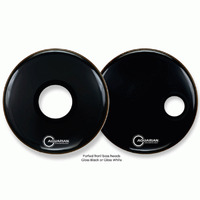 AQUARIAN SMPTCC18BBK PORTED FR BASS Small Hole: A ported front bass drumhead that features a 4 3/4? hole placed off center. This drumhead is available in Video Gloss black or white. 10 mil ply construction.