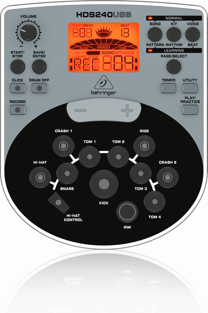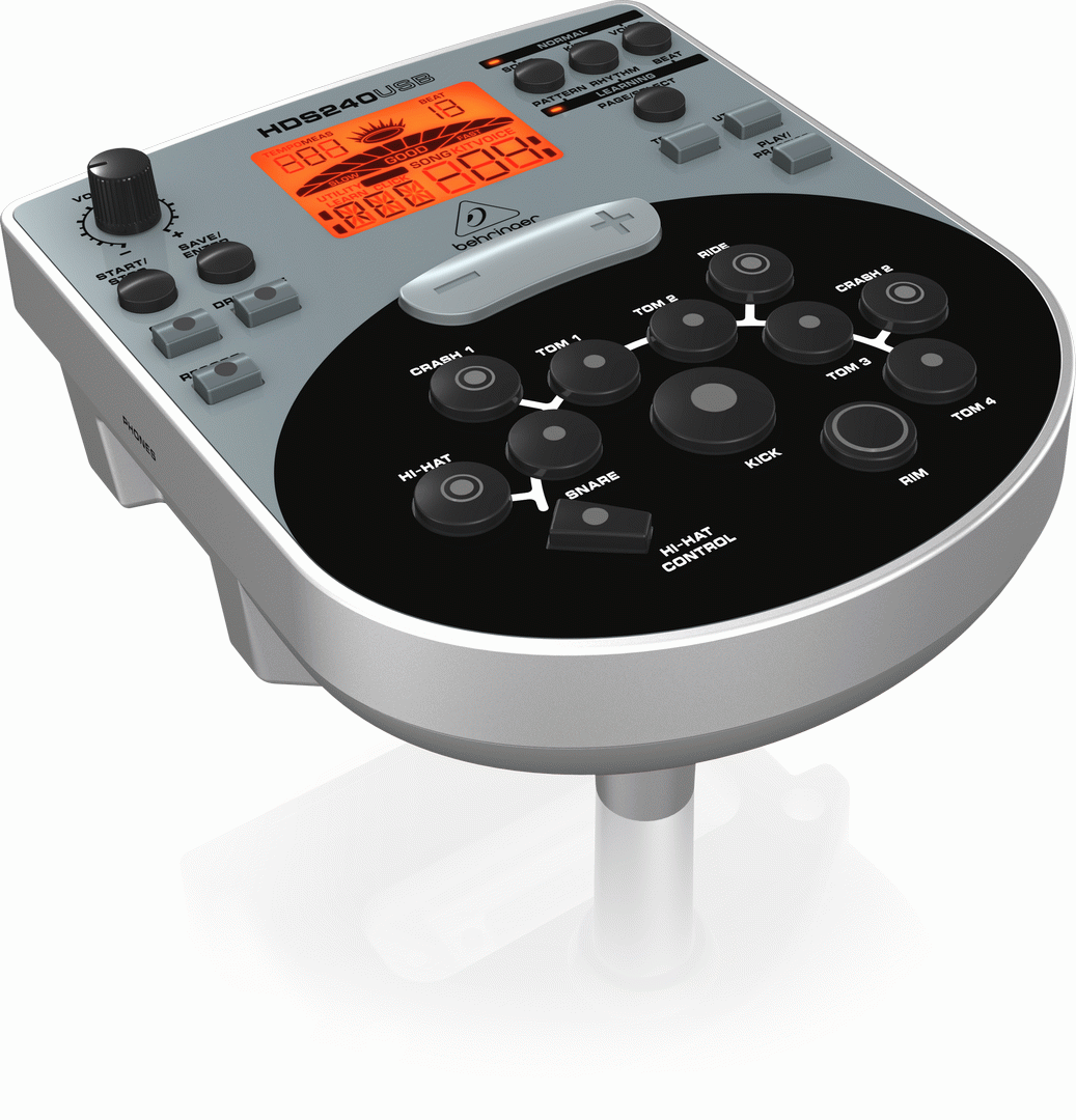 BEHRINGER XD80USB ELECTRONIC DRUMKIT The XD80USB 8-piece electronic drum set comes with everything you need to lay down the groove including a professional-grade kick pedal with trigger pad; dual-zone snare for standard head and rim play; 3 x 8" dual-zone pads; 3 x 12" dualzone cymbals; and a 3-position hi-hat control pedal (open, half-open, closed). The accompanying drum rack is easy to assemble, and comes with all mounting hardware - plus the multi-pin cable makes quick work of connecting all your pads to the incredible HDS240USB sound module. With 15 drums sets and 175 sounds to choose from, every time you sit down at your XD80USB - your creativity will instantly be unleashed! Easy setup and feel are important, but how does the XD80USB sound? Thanks to our HDS (High Definition Sampling) technology you get top-notch studio drum, percussion and cymbal sounds, all of which are velocity sensitive for your most-nuanced performance. The factory-preset kits and sounds are programmed to give you an amazing range of professional-grade sounds for the ultimate versatility, but you can always use XD80USBs MIDI capability to build a custom library via external MIDI sound modules. Plus you can program and store your own kits for instant recall. 8-piece electronic drum set with HDS240USB sound module Ships ready to rock with everything you need to start immediately 10 factory presets plus 5 user-programmable drum sets Large LCD and icon-driven user interface for easy operation USB and MIDI interfaces to connect with any virtual instrument and drum software (not included) HDS (High Definition Sampling) technology provides an authentic drumming experience 175 studio-grade drum, cymbal and percussion sounds Realistic-feeling, natural playing trigger pads and cymbals Dual-zone snare and tom pads for drum head and rim playing techniques Dual-zone crash and ride cymbals for bell and rim playing styles Audio input to play along with your iPod*, iPhone*, iPad*, or MP3 player Built-in sequencer for play-along practice and performance Professionally composed tracks cover a wide variety of musical styles All sounds are velocity-sensitive for natural dynamic response Conceived and designed by BEHRINGER Germany Includes: - HDS240USB sound module - Kick pedal, pad and stand - 1 x 8" dual-zone snare pad - 3 x 8" dual-zone pads - 3 x 12" cymbals - Hi-hat trigger pedal - Drum rack with mounting hardware - Multi-pin breakout cable for easy setup - Pair of drumsticks - Drum tool - Quick start guide and assembly instructions