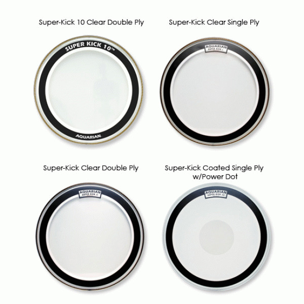 AQUARIAN SKI16 SUPER-KICK CLEAR 1PLY Super-Kick I€ž¢: A clear, 10 mil single ply, medium weight bass drumhead. The Super-Kick€ž¢ series features Aquarians patented Floating Muffling System‚¬ï¿½. A narrow felt muffle ring is attached to the backside of the drumhead to produce a low-end, well-define