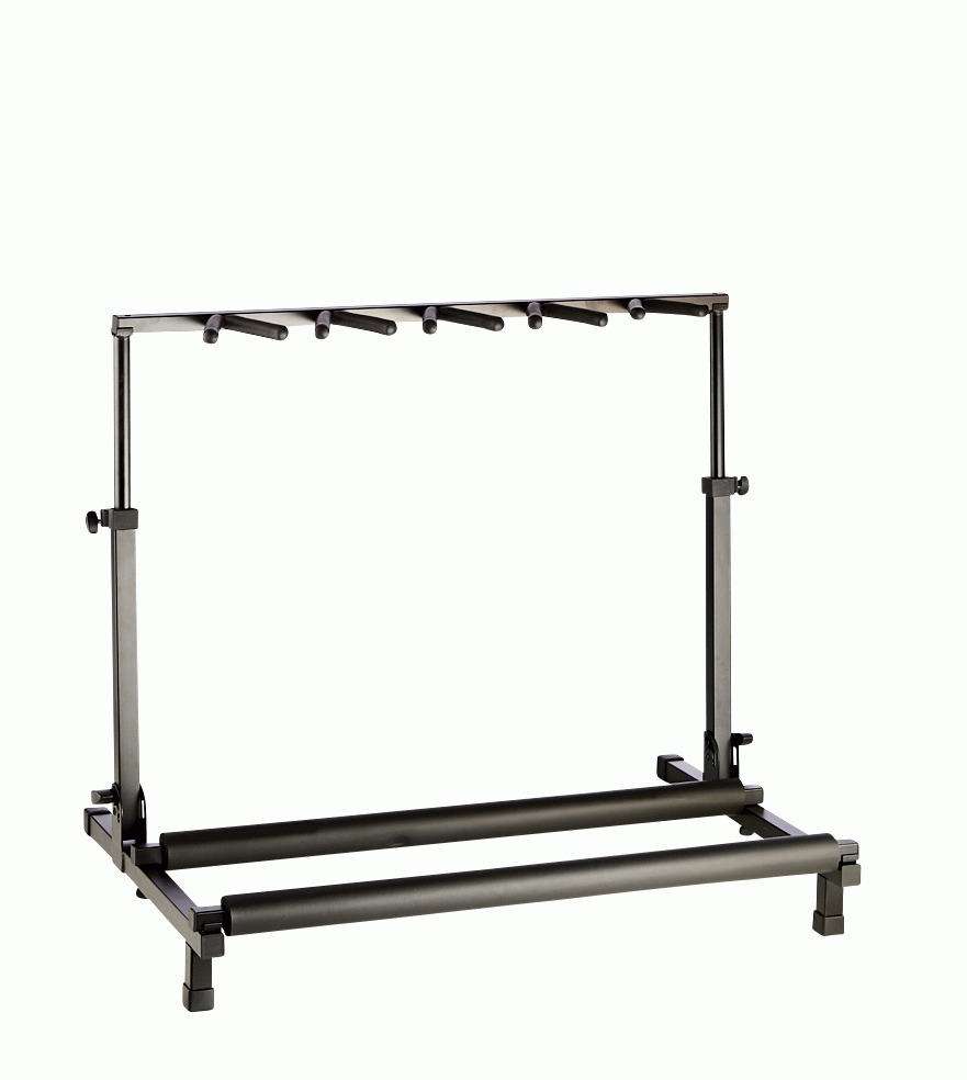 ARMOUR GS55 5 GUITAR RACK STAND Armour is a brand that represents reliability for how and when you use your instrument and sound equipment. It gets the job done. Our range of Stands in both fixed or portable configurations supports different guitar styles, even when you have multiple instruments. Keep your stage, studio or even your home guitar collection organised with this black finish guitar rack, designed to hold 5 guitars. Foam neck and base protection makes sure your guitars remain in place. Rubberised feet ensure the stand will safely hold your electric, bass and acoustics without risk of slippage. And its foldable design means you can take this GS55 on the road or store it away easily.