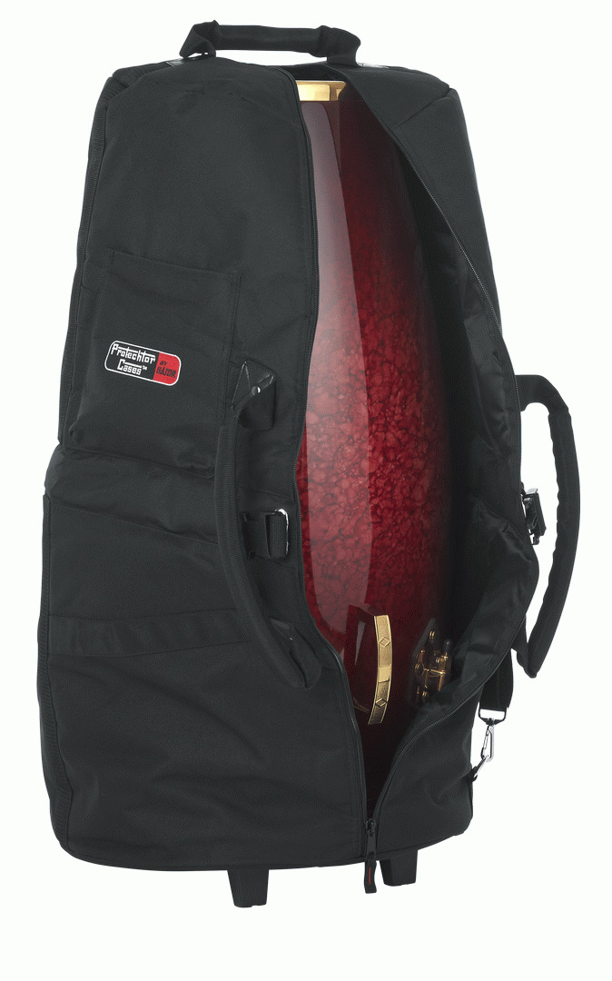 GATOR GP-CONGA-W PADDED CONGA BAG Gator Cases provides you with the products that protect what's important to you. This is the Gator GP-CONGA-W. A part of their World Percussion Cases and Bags Range. It is a Padded Conga Bag w/ Adjustable Strap; w/ Wheels. Durable 600-Denier Nylon Construction with Padded Interior with Reinforced Bottom. Features include - Comfortable Carrying Straps and Should Strap, Adjustable interior strap helps to fit many different sizes up, Wheels and drag handle for easy transport, and .