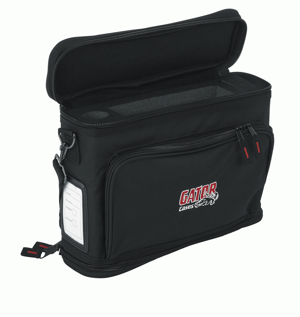 GATOR GM-1W WIRELESS MIC PADDED BAG Gator Cases provides you with the products that protect what's important to you. This is the Gator GM-1W. A part of their Wireless System Cases Range. It is a Padded Bag for A Single Wireless Mic System. Designed for Single Wireless System to be Used in the Case with Access for Antenna to be Extended While in Case. Features include - Space for lavalieres, cables, & wireless mic with transporter mounted, Front & rear access unzips for easy setup in the field, Shoulder strap and information card window with card, and .