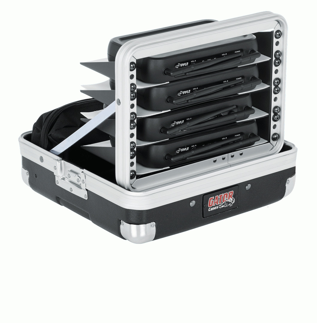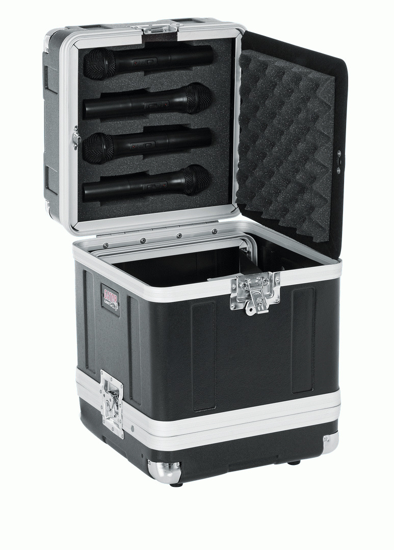 GATOR GM-4WR MOLDED MICROPHONE CASE Part of the Gator Cases Protection Range in the Microphone product category - Wireless System Cases. ATA Molded Case for 4 Complete Wireless Mic Systems; half rack