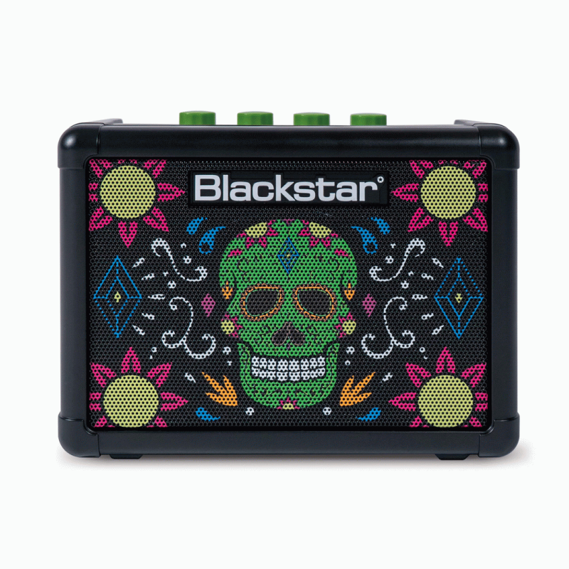 The FLY 3 in the Sugar Skull finish is an innovative, cutting-edge 3-watt mini amp which combines two channels, tape delay, and the Blackstar patented Infinite Shape Feature (ISF) to create the perfect compact and portable guitar amplifier.