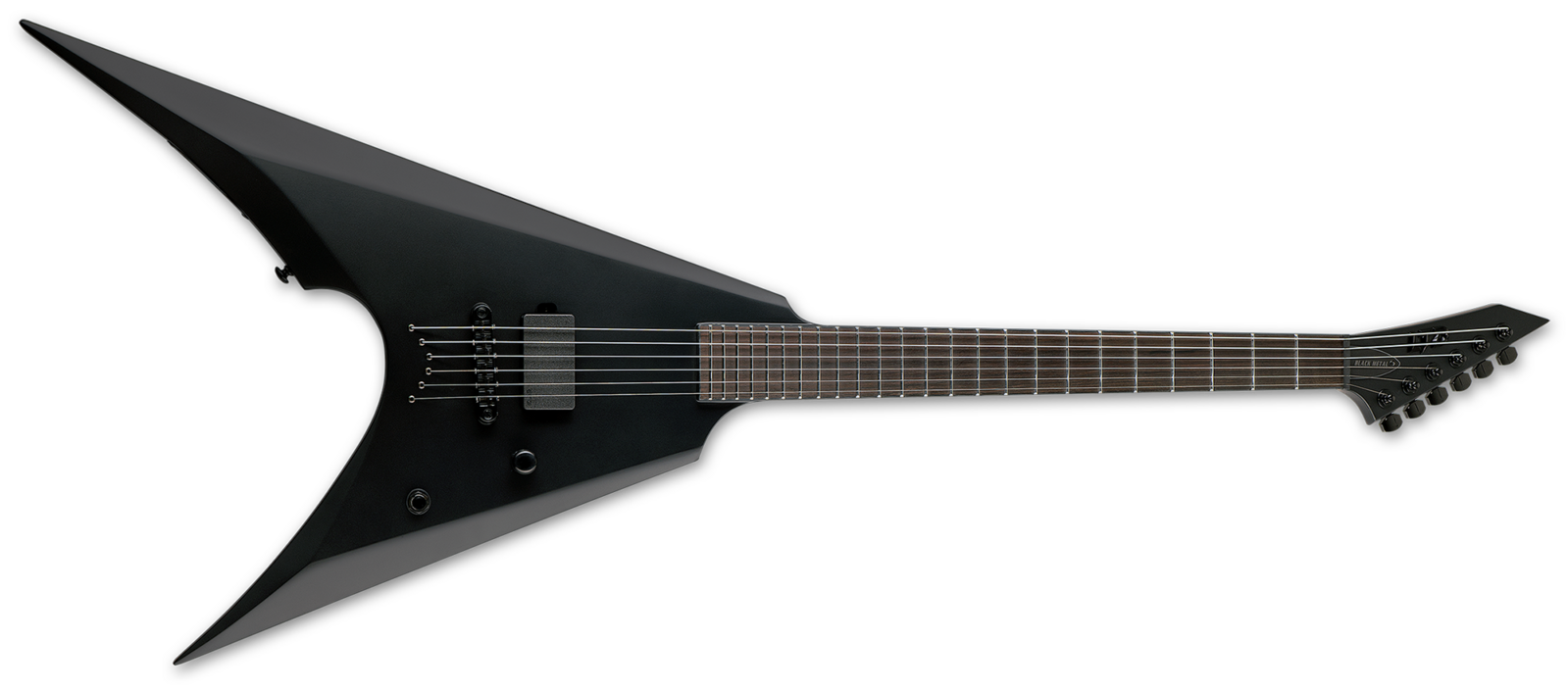 The LTD Black Metal Series is comparable in build quality to our LTD Deluxe “1000 Series” instruments, but with a dark and menacing design theme of all-black finish, components, and hardware, a single premium-quality pickup, Macassar ebony fingerboards with no inlays and glow-in-the-dark side markers, and even a newly-designed black metal LTD logo on the headstock. The Arrow-NT Black Metal takes the bold, extreme Arrow body shape and presents it in the killer Black Metal design scheme, with stainless steel frets, a TonePros locking bridge with string-thru-body design, a single aggressive direct-mount EMG 81 pickup with black logo, a single volume control, and an EMG TKO kill switch.