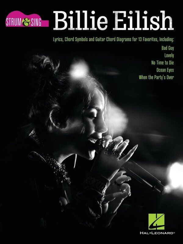Just the chords and lyrics for 13 songs from this young breakout Grammy Award winner, including: Bad Guy • Bellyache • Everything I Wanted • I Love You • Idontwannabeyouanymore • Lovely • My Future • No Time to Die • Ocean Eyes • Six Feet Under • Therefore I Am • When the Party's Over • Wish You Were Gay. Billie Eilish - Strum & Sing Guitar Publisher: Hal Leonard Instrument: Guitar Format: Lyrics & Chords Pages: 40 Series: Strum & Sing