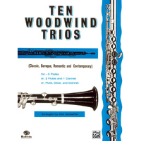 Arranged by Don Schaeffer, Ten Woodwind Trios presents 10 level 3 trios for woodwinds. Titles: * Rigadoon (Purcell) * Air (Purcell) * A Little Dance (Haydn) * Minuet in C (Mozart) * German Dance (Beethoven) * March (Prokofieff) * Lullaby (Stravinsky) * So