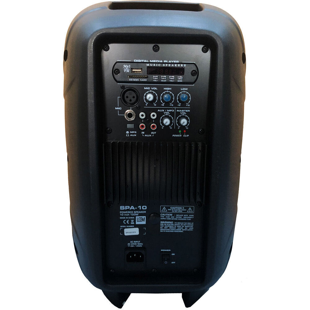 Leem SPA-10 Active 120W 2-Way 10" PA Speaker with Built-in MP3 Player, USB Input, and SD Card Slot