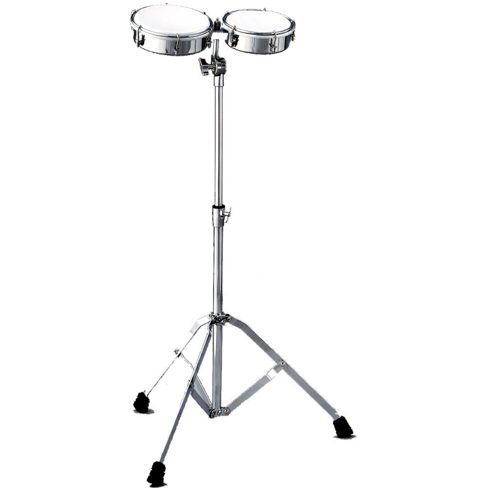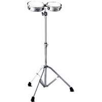 With space at a premium, the compact MI-65 Mini-toms answer the call for more sounds in a small area. The two shallow metal shells are connected (visually similar to a pair of bongos) and the 6" and 5" diameter tuneable toms produce a short, powerful percussive effect. Coming with a sturdy stand, it can be adjusted both in height and angle for best fit. FEATURES: Mini toms pair with 5" and 6" metal shells Synthetic white head Tuneable with 5 lugs Add new tones to your drum kit or percussion set in a small package Perfect to play with drumsticks Included heavy duty stand with height and angle adjustment