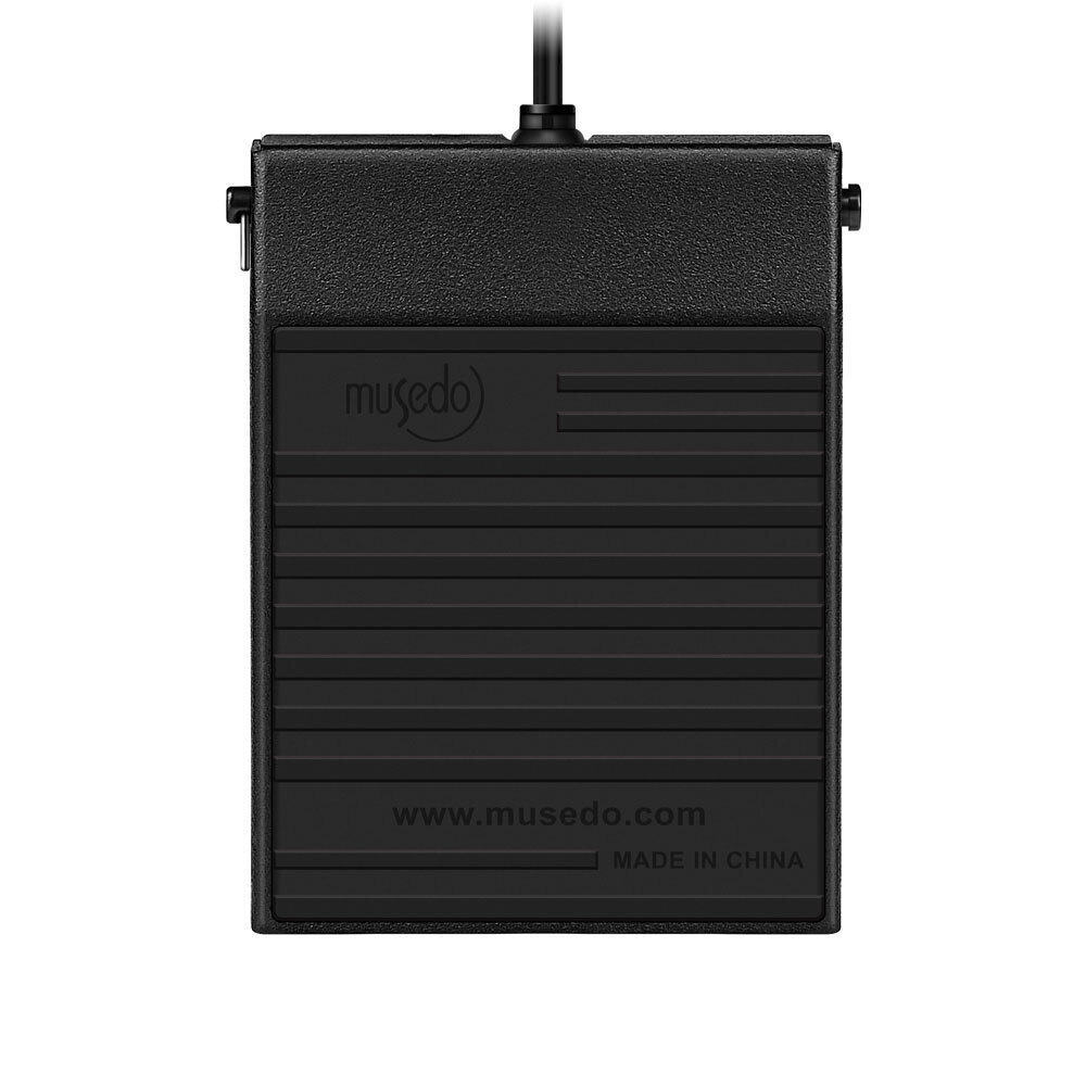 The Musedo TB-004 Sustain Pedal is designed with a metal housing and non-slip rubber surface. It has a polarity switch and is compatible with all electronic keyboards and digital pianos or other instruments requiring a foot pedal.
