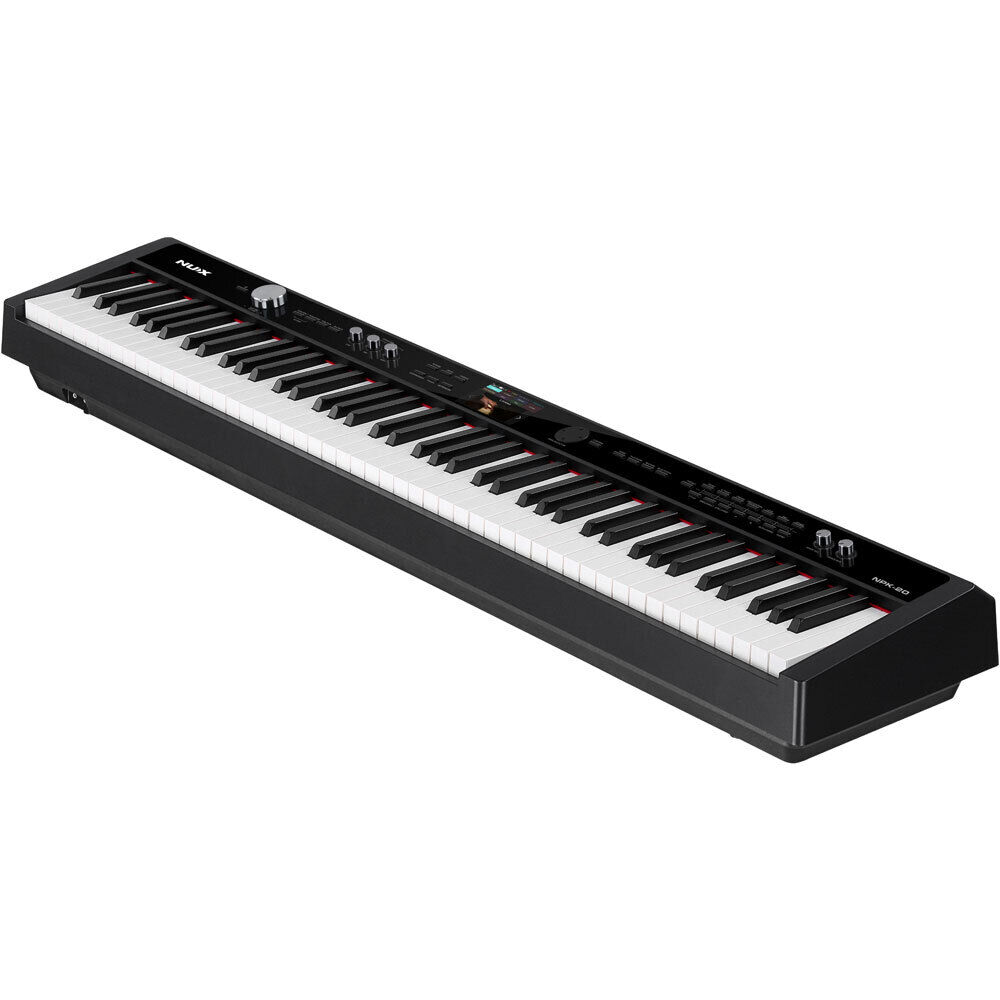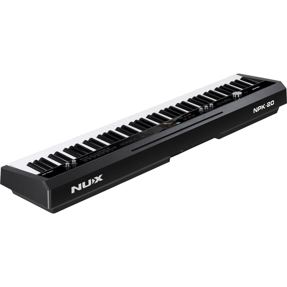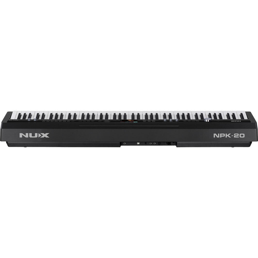 The NUX NPK-20 is our latest powerful portable digital piano. Building off the sound and feel of our bestselling NPK-10, the NPK-20 further optimizes the acclaimed NUX WKJ-03 keyboard and makes it feel even more natural. Fully loaded with 271 high-quality sounds in 7 groups, the NPK-20 is also equipped with an automatic accompaniment function for dynamic performances, professional effects based on advanced audio processing technology, and even a dynamic mic input for a perfect performance solution. SPECIFICATIONS: Keyboard 88 Key NUX WKJ-03 Keyboard (Piano stand is not included) Triple-sensor scaled hammer-action weighted keyboard (with escapement and synthetic ebony/ivory keytops) Touch Sensitivity: 5 levels Sounds and Effects Sounds: 271 high-quality sounds (7 groups) Tone Brilliance: 5 levels Layered Sounds: Yes (mix balance adjustable) Split Keyboard: Yes (split point adjustable; individual octave shift and tone selection) Max. Polyphony: 108 Compressor: 4 types (soft, R&B, lyric piano, standard piano), 5 parameters (ratio, attack, release, threshold, boost) Reverb: 4 types (hall, plate, room, studio), 5 parameters (pre-delay, size, reverb time, diffusion, output level) Chorus: 4 parameters (HPF, LPF, depth, level) Delay: 4 parameters (time del, feedback, H damp, level) Equalizer: 9-band Accompaniment and Microphone Microphone: dynamic microphone input (XLR & 6.35mm combo jack), gain control, volume, reverb Auto-Accompaniment: 100 styles (auto chord, single/multi fingering, sync start, A/B variations, intro/ending) Functions Transpose: -6 to +5 in semitones Octave Shift: -1 to +1 octaves Demo Songs: 100 Metronome: 9 beats, 3 sounds, 20-280bpm Recording: 5 songs User Presets: 7 memory banks Auto-Sleep: Yes Bluetooth: Bluetooth MIDI, Bluetooth Audio Connectivity and Speakers USB MIDI, AUX IN, LINE OUT (L/MONO, R), 3.5mm Stereo Phones Output x 2, Damper Pedal (included), Pedal Unit (optional), Microphone Input Amplifiers and Speakers: 10W x 2, 3"x6" oval speaker x 2 Display: TFT LCD 800x480dpi Power Supply DC 12V/2A Size and Weight Dimensions: 1300mm x 270mm x 130mm Weight: 12.2kg (music stand included) Chic and Unique Design A 4" 800 x 480 dpi full-color LCD, stylish control panel, and slim design. Whether you're practicing at home, band busking on the street, or livestreaming your performance, the NUX NPK-20 is perfect for your performance and inspiration.; The Grand Piano Feel Within Reach The NPK-20 uses our WKJ-03 Triple-Sensor Graded Hammer-Action Weighted Keyboard (with escapement and synthetic ivory and ebony keytops), and has further optimized its key touch curves and sound design. More professional processing has been made for its key touch in terms of downforce, rebound recognition, legato recognition, etc. The sense of escapement and the balance of the black and white keys are also more even. Moreover, the NPK-20 has added a key noise reduction design. Ultimately, it meets all kinds of playing and performance needs, and restores the real touch of a grand acoustic piano. A Dynamic and Rich Sound Providing an accurate and truly grand piano sound can be a tall order. We achieved this for the NPK-20 by sampling a delicate and expressive German nine-foot grand piano. We didn't stop at just one sound, as the NPK-20 includes a total of 271 high-quality sounds, divided into 7 groups on the top panel. All the sounds have been carefully processed and optimized resulting in a sound selection that is both powerful and rich. The sounds can be chosen or layered intuitively on the panel, such as the sound of piano layered with the ambient sound of orchestra. A Microphone Input and Reverb - Perfect for Playing and Singing A perfect solution for the performing singer/songwriter in you. Simply connect a dynamic microphone to the MIC input with adjustable gain control. Finally, adjust the on-board reverb effect for the microphone to make your performance come alive! Professional Effects and EQ The NPK-20 includes professional effects, including 4 types of reverb (hall, plate, room, studio), 4 types of compressor (soft, R&B, lyric piano, standard piano), chorus, and delay. You can freely combine different effects, set your own parameters and recall them at any time. Reverb: Pre-Delay, Size, Reverb Time, Diffusion, Output Level Compressor: Ratio, Attack, Release, Threshold, Boost Chorus: HPF, LPF, Depth, Level Delay: Time Del, Feedback, H Damp, Level Also included is a 9-band EQ. You can create and adjust the EQ settings perfect for your performing to your environment and devices (amplifiers, headphones, built-in speakers, etc.), store and recall them at any time. Auto Accompaniment - A One-Man Band Our included Auto Accompaniment feature enables you to control a variety of different styles of bands using single/multi-fingered chords. You can choose A/B variations and add intros and endings, resulting in professional sounding live performances. When you deactivate the Auto Chord, the accompaniment styles become a drum machine, giving your performances even more possibilities! Bluetooth Audio & MIDI If you want to stream music from your mobile device to the NPK-20, simply connect via Bluetooth Audio. Also, you can connect the NPK-20 to educational APPs via Bluetooth MIDI. And the NPK-20 comes with a free APP, Piano Mate, which provides a variety of sheet music. It's compatible with other 3rd party APPs as well. Dual Sounds & Dual Keyboard You can layer sounds, octave shift for the whole keyboard or split the keyboard to 2 sections and change their sounds and octave separately. Flexible Connectivity & More Functions The NPK-20 also provides Aux In, Line Out (L/MONO, R), USB MIDI, 2 Headphones Outputs, Damper Pedal Jack, and Pedal-Unit Jack, perfect for various performance applications. The NPK-20 also provides handy workflow functions. There are 7 user preset slots, convenient for you to quickly save and recall all the sounds and parameters. You can also practice with the built-in metronome which 