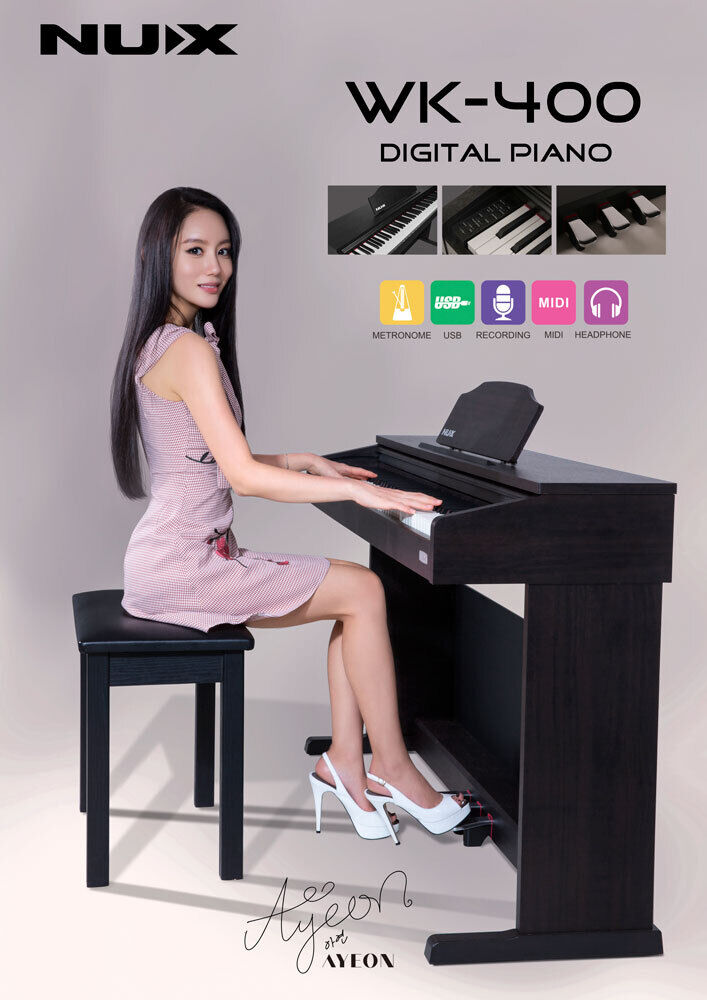More than an Average Digital Piano! The WK-400 comes with all the essential functions a digital piano should have. Alternative tones, Recording, Metronome function, Classical demo songs, dual-keyboard, onboard effects, but even more with the authentic touch keyboard at a reasonable price"¦ Features: The Keyboard that Provides Authentic Piano Touch. After years of designing and manufacturing digital pianos, we have found the best solution to solve the problem of We've been manufacturing digital pianos for some years now. Finding the best keyboards was always the most headache problem. So, here comes the problem solver: self-invented full-weighted, harmer-action keyboard assembly. Play Loud or Keep It Private Learning piano is all about practice, practice makes perfect. When it comes to piano class, it's important to keep one student from disturbing others. Just hook up your earphones and make your practice private. Want to share your performance with others? The built-in stereo loudspeakers can deliver your passionate playing in real-time. Inexpensive Productive Tool You're getting more than just a digital piano but also a MIDI keyboard controller. The WK-400 features USB-MIDI, just connect it to your PC/Mac, use your favorite DAW to turn it into productive MIDI Keyboard controller. Specifications: Keyboard 88 keys scaled hammer action keyboard 4 Dynamic Curves: Light, Standard, Heavy, On/Off Keyboard Modes: Whole, Dual (volume balance adjustable), Split (split point adjustable), Twin Piano Pedals: Soft Pedal (Left), Damper Pedal (Middle), Sustain Pedal (Right) Sound Tones: 128 built-in tones Keyboard Percussion: 1 set Demo Songs: 52 Max. Polyphony: 64 x 2 Key Transposition: -12 to +12 (in semitones) Effects: Reverb (On/Off), Chorus (On/Off) Metronome Tempo: 20 - 280bpm Beat: 0 - 6 Recording Function Tracks: One Note Storage: Approx. 48,000 notes Other Display: LED Three Digital Numeric Display Exterior: Black wooden PVC finished, upright style Jacks: USB-MIDI Jack, Pedal Jack, Power Jack, Headphone Jack (6.35mm), Line In R/L Jack (RCA), Line Out R/L Jack (RCA) Power: DC 12V, 2A, positive tip Weight: 39kg Dimensions: 1360mm (L) x 320mm (W) x 770mm (H)
