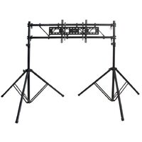 Ideal for DJ's, Karaoke, Educational Facilities and other mobile display/performance needs. The five-foot steel truss piece attaches to a pair of tripod stands that adjust from 62.75" to 88.5" in height. The mounting bracket holds TV sizes from 40" to 70"