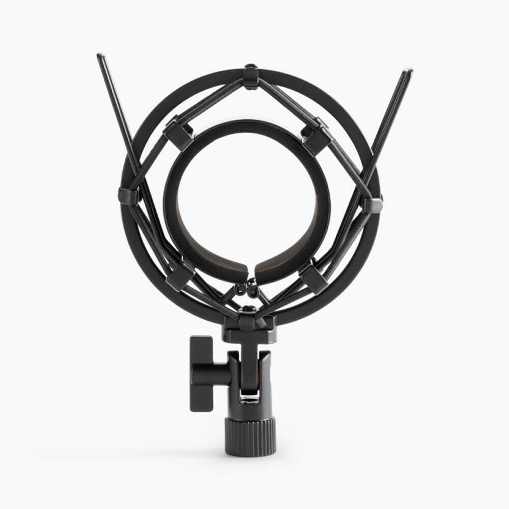 The On-Stage MY440 is a heavy duty microphone shock mount that fits 48mm to 54mm in diameter. Constructed of heavy duty, durable steel, this shock mount has a dependable mounting socket that mounts to most microphone stands. The EVA-lined clamp protects the microphone from scratches, scrapes, and dents. The elastic suspension isolates the microphone, preventing vibrations from obstructing your recording. FEATURES: Elastic suspension isolates mics from external vibrations to maintain pure sound Durable steel construction EVA-lined clamp protects mics from scratches Angle adjusts and locks in place for precise, reliable mic positioning Mounts to all standard mic stands and booms Clamp fits large-diaphragm condenser mics 48-54 mm in diameter Heavy-duty steel mounting socket for stable, dependable mic support SPECIFICATIONS: Application: Securely mounting microphones 48mm-54mm in diameter Size: Medium (48-54mm) Material: Steel/Elastic Colour: Black Fits: 48-54mm in diameter; 5/8" - 27 threading