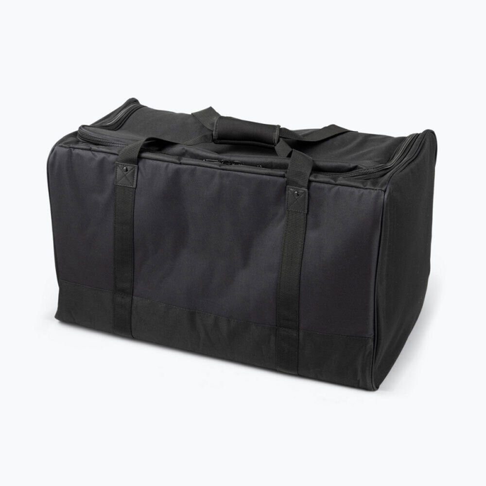 Our rugged SB1200 12" Speaker Bag provides safe, ergonomic transportation for a wide range of 12" speakers. Its heavy-duty exterior and thickly padded interior deliver two layers of protection against cabinet dings and internal damage. For efficient packing and unpacking, the bag features a wide square opening with a two-pull zipper fully opens and closes at either end or any point between. Padded top handles enable easy one-handed carrying while a convenient exterior pocket keeps cables, connectors, tools, and other accessories within reach. FEATURES: Protective storage and transportation for most 12" speakers Two straps with a padded handle for comfortable lifting and carrying Heavy-duty, weather-resistant exterior, piped edges, and padded interior protect gear from damage Exterior pocket keeps cables, connectors, and other accessories with the speakers SPECIFICATIONS: Application: Fits most 12" speakers Bag Dimensions (L x W x H): 24.5" x 14.5" x 15" Side Pocket for Cables and Accessories (L x H x D): 21.5"  x 8"  x 1" Materia:l Heavy-duty padded nylon Colour: Black