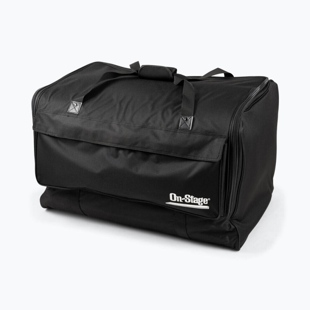 Our rugged SB1500 15" Speaker Bag provides safe, ergonomic transportation for a wide range of 15" speakers. Its heavy-duty exterior and thickly padded interior deliver two layers of protection against cabinet dings and internal damage. For efficient packing and unpacking, the bag features a wide square opening with a two-pull zipper that fully opens and closes at either end or in the middle. Padded top handles enable easy one-handed carrying while a convenient exterior pocket keeps cables, connectors, tools, and other accessories within reach. FEATURES: Protective storage and transportation for most 15" speakers Heavy-duty, weather-resistant exterior, piped edges, and padded interior protect gear from damage Exterior pocket keeps cables, connectors, and other accessories with the speakers Two-pull zipper opens or closes at either end or any point between for ease of access SPECIFICATIONS: Application: Fits most 15" speakers Bag Dimensions (L x W x H): 28.5" x 19.5" x 18.7" Side Pocket for Cables and Accessories (L x H x D): 25" x 9.5" x 1" Material: Heavy-duty padded nylon Colour: Black