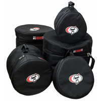 Nutcases are quite simply light years ahead of the competition in this highly competitive entry level market. If you are in the market for entry level, intermediate drum cases, you'd be crazy not to check out Nutcases! Nutcases include features perfected in the Proline range making them super tough and light weight. Made of strong, abrasive resistant outer fabric which does not stretch or shrink, they are lined with a dense, light and highly impact resistant 20mm foam core. The interior is finished with a 210-denier nylon interior to resist rips and tears. The high-quality zippers used in the Nutcases all have brushed steel pulls and the ergo dynamic handles are comfortable and hardwearing. Plus, the snare and tom Nutcases are egg shaped to allow for the snare mech and toms fitted with suspended isolation mounting systems. When it comes to construction of our cases, there is no compromise in material quality. A lot of thought, experience and rigorous testing go into every case. From concept to design to production can take up to 18 months and every case is put through its paces by Team Protection Racket. By the time it's reached the store, we have 100% confidence in its performance.  For design, quality, reliability, choice and confidence, nothing comes close. Features: 600 Denier polyester outer.  Hardwearing and waterproof Inner 20mm lightweight but super shock absorbent memory foam 210 Denier nylon interior Highest quality YKK zip and nickel plated stainless steel zip pulls Comfortable foam/neoprene carry handle Silicone size label showing case drum size Egg shape Tom cases to fit toms fitted with and without Rims/Suspension mounts 5-Piece Case Set consisting of: Bass Drum: 22" x 18" Floor Tom: 14" x 14" Floor Tom: 16" x 16" Tom Toms: 12" x 9" Snare Drum: 14" x 6.5"