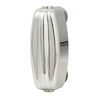 This lug was used on Rogers drums between 1959 and 1964. The original iconic design was made of drawn brass with chrome plating. Known as the Bread & Butter lug, "B&B" or the "Tab Lug" which refers to two threaded tabs that mounted the lug to the drum. Although a celebrated visual feature of the Rogers drums, these original lugs were prone to breaking over time, due to extended stress on the tabs even with normal use. The new Rogers B&B vintage replacement lug is, in size and appearance, a faithful reproduction of the original 1960 B&B lug, however, it features a completely re-worked die-cast construction that will not crack under tuning tension, or from any playing wear 'n tear. A spring-less design uses nylon inserts to hold lug inserts in place. Specifications: Lug body: 2-1/4" long end to end Two sided spring-less design Mounting hole spacing: 1-5/8" Includes standard mounting screws and gasket