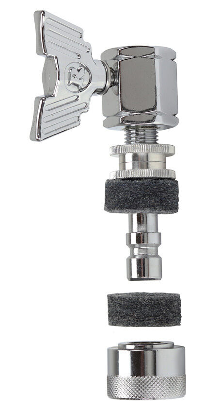 Save time and aggravation with this revolutionary clutch system, just pull on the metal sleeve and the auto clutch releases. Slip off the felts mount, your hi hat cymbal then pushes in at the bottom of the metal sleeve and you're locked in place. All metal design uses a spring and ball bearings to hold sleeve in place.