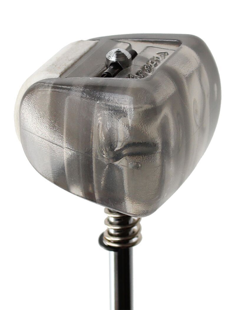 Without any tools, you can instantly change the Beater playing surface from the standard felt side (muted tone), to the hard plastic side (crisp attack). Simply push down the spring loaded beater head and rotate it to the desired playing surface, and it s