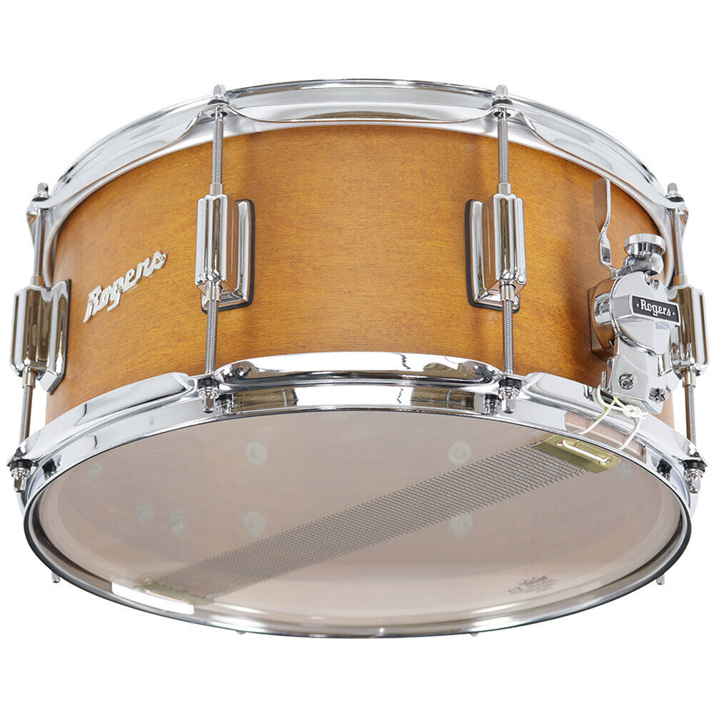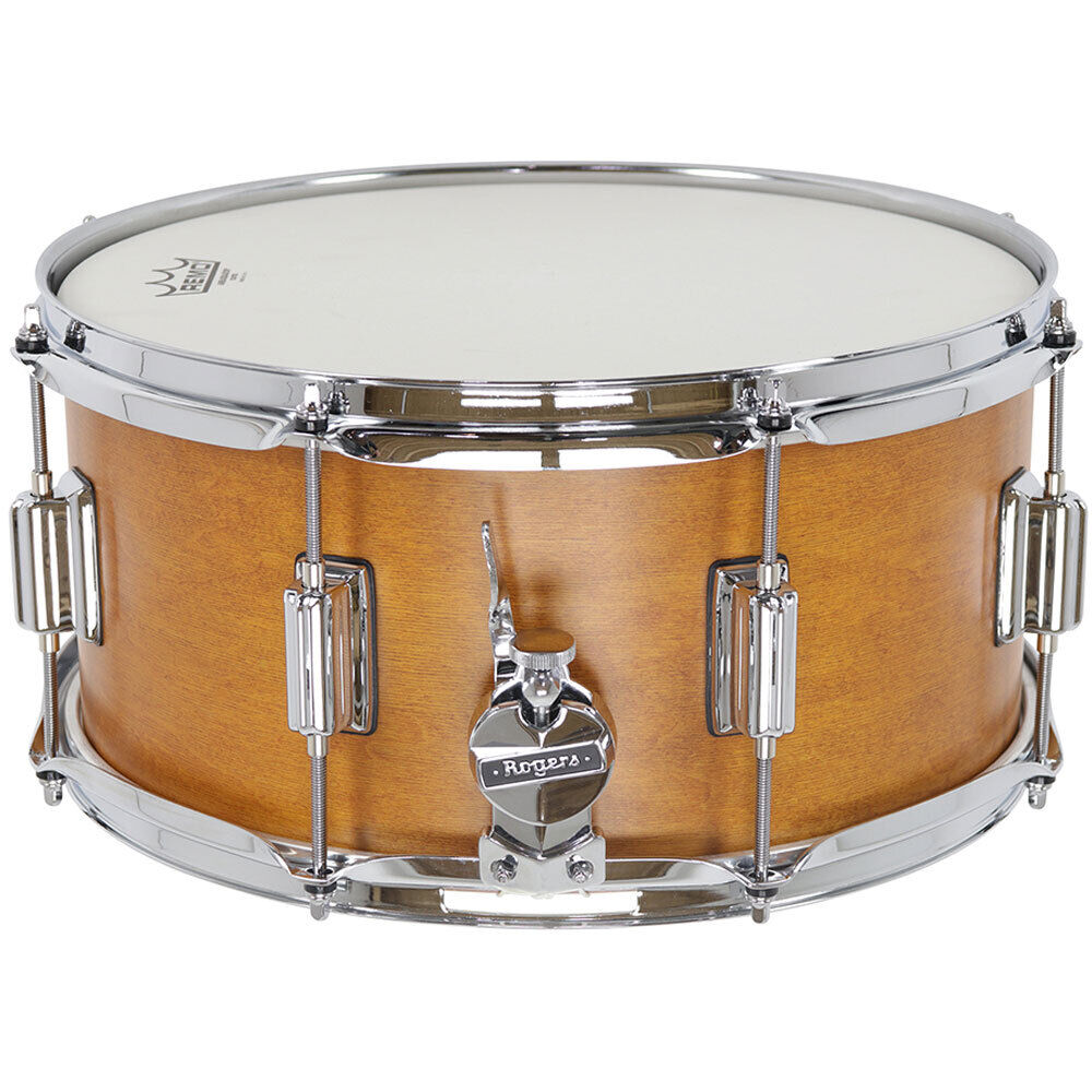 A beloved classic re-imagined. With retro-modern styling and center-lug profile, the new Tower series embodies the Rogers' look and sound that drummers have forever cherished. Debuting in Rogers' signature Satin Fruitwood Stain, Tower drums set a new benchmark along the Roger's Continuum. Fashioned after the vintage kits of the 1960's, the Tower series may look retro, but pack a decidedly modern voice that lives up to its name. With our proprietary 5-ply shell, reinforcement rings and precision-cut bearing edges, this formula shines producing warm, resonant tones and projection across a wide tuning range. The Tower series drums feature the classic, center-mount lugs and Rogers' signature script logo badge, 2.3mm hoops and our trademark Fruitwood stain interiors SPECIFICATIONS: Model No: TWR-26-SFWS Finish: Satin Fruitwood Stain Size: 14 x 6.5" Shell : 5-ply Maple-Poplar with 2-ply reinforcement rings Hoops : 2.3mm triple flanged, 8 lug Shell Interior: Fruitwood Stain Lugs : Beavertail die-cast lugs (8) Throw-off : Clock Face Badge : PowerTone Heads : Remo USA Batter / UT Snare Side