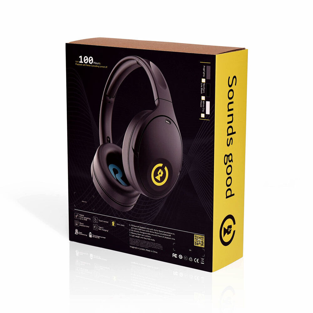 The Soho 2.6 is a bit like a Stratocaster it's the go-to product in our company's range. Similar to its big brother, the Soho 45s, it has active noise cancelling technology and the Soho 2.6 is completely wireless (they call it TWS true wireless sound). The big difference with the Soho 2.6 to any product we know of is that you can playback your favourite bangers for up to 100 hours from a single charge. Hybrid noise cancelling technology is a posh way of saying that the way Soho makes their headphones and the materials they choose stops outside noise coming inside the headphones. When you mix that with active noise cancellation, which is taking in certain sounds and chucking them back out again using microphones and fairy dust, you get a seriously decent isolated audio experience. Light-weight and durable, you can't go wrong with the Soho 2.6, so whether you're using a CNC machine all week and want to relax to sweet sounds of Sam Cooke or you're riding the tube and need that boost of Bob Marley, these will not let you down. SPECIFICATIONS: Speaker size: 40mm NdFeB speaker Audio decoding: SBC Frequency response range: 20-20kHz Connection method: Type-C charging cable Support mode: BT 5.0, HSPv1.2, HFP v1.6, A2DP v1.2, And AVRCPv1.4 Connection method: Type-C charging cable Bluetooth frequency: 2.402-2.480GHz Bluetooth power: <8.0dBm Battery specifications: Rechargeable polymer lithium ion battery 1200 mAh Charging time: 3 hours Headphone playback time: Up to 70 hours (ANC ON)/ Up to 100 hours (ANC OFF) SWIPE ME UP All with the touch and swipe of no button! Playback controls on the Soho 2.6 are all made from the touch pad in the right ear piece. CHEEKY BUILT IN MICROPHONES Built-in microphones allow you to talk hands-free and also are used for the ambient and ANC features. IT IS ALL ABOUT COMFORT Ultra-soft memory foam head cushion allows all day wear without any irritation or discomfort. There's no point in having headphones that last for 100 hours from 1 charge and them not being ultra-comfortable. MEGA POWER - 100 CLUB! Seriously, the Soho 2.6 last for 100 hours, if you don't use ANC. If you do use ANC, you'll still get 70 hours. That's pretty decent. HANDS FREE CALLING Answer your calls when you're on the go. Just give the right earbud a little tap. 100% RECYCLABLE PACKAGING It goes without saying, let's keep the world for our kids and do our part where ever we can.