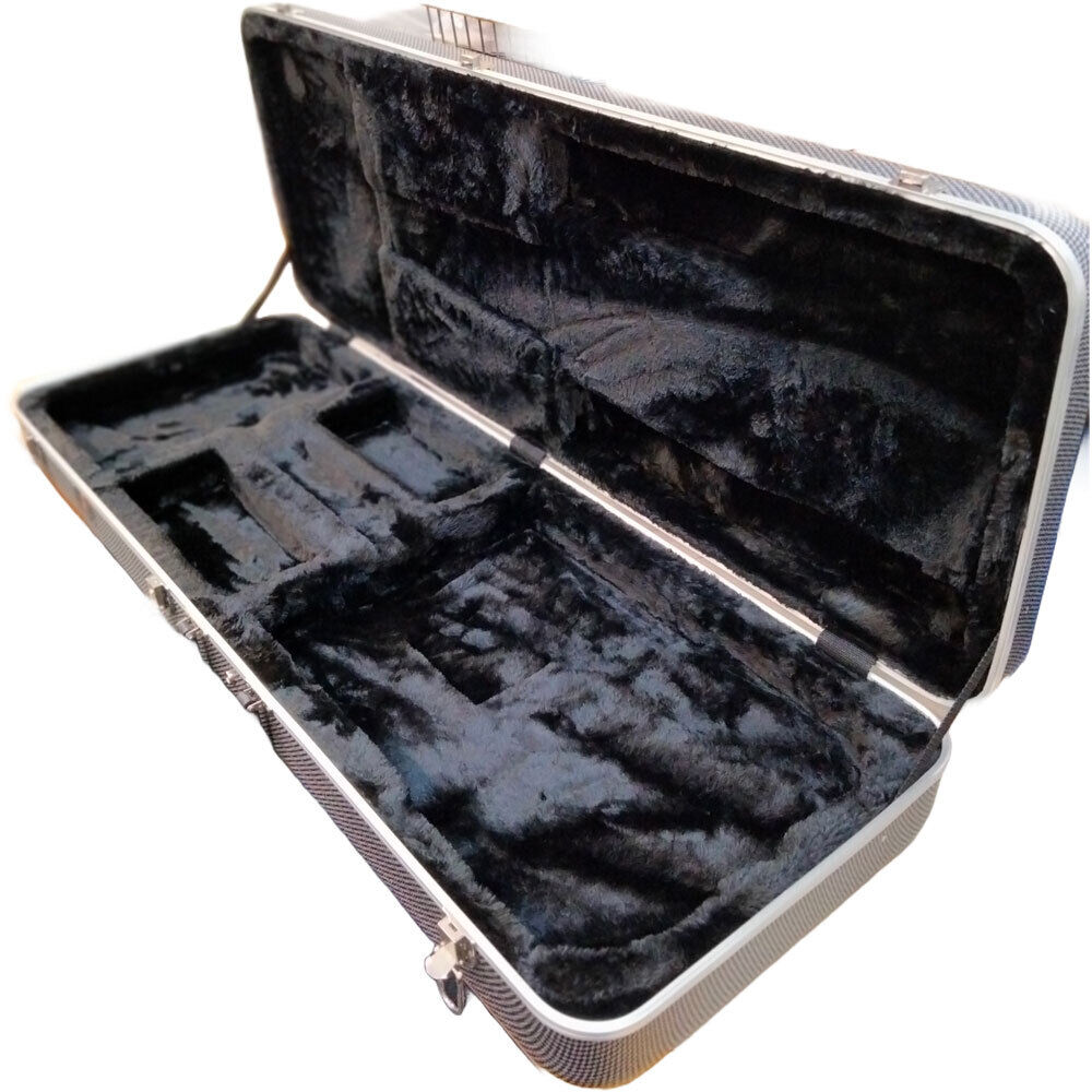 This deluxe molded electric guitar case is made from the finest eco-friendly ABS plastic with an ultra-strong extruded tongue-and-groove aluminum valance. The interior is created from EPS foam giving ultimate support, then covered in plush to completely protect your electric guitar from scratches and nicks. It has an interior accessory space for storage and includes 1 lockable latch in the middle of 3 riveted latches. The rubber feet provide stability while the convenient offset handles provide easier transportation. FEATURES: Hard and roadworthy shell molded from impact-resistant ABS plastic for an ultra-durable exterior EPS foam and non-scratch soft plush lining provide a protective interior while the padded neck brace provides extra safety for your guitar Spacious interior storage compartment offers secure hideaways for capos, strings, picks and accessories Reinforced, rough-bolted, ergonomically designed handle offers a firm grip and better balance during transport Heavy-duty aluminum valances keep the closure aligned while protecting the outer edges and reinforcing the  overall strength of the case 3 triple chrome plated latches; one of which is lockable to keep your instrument securely in place at all times