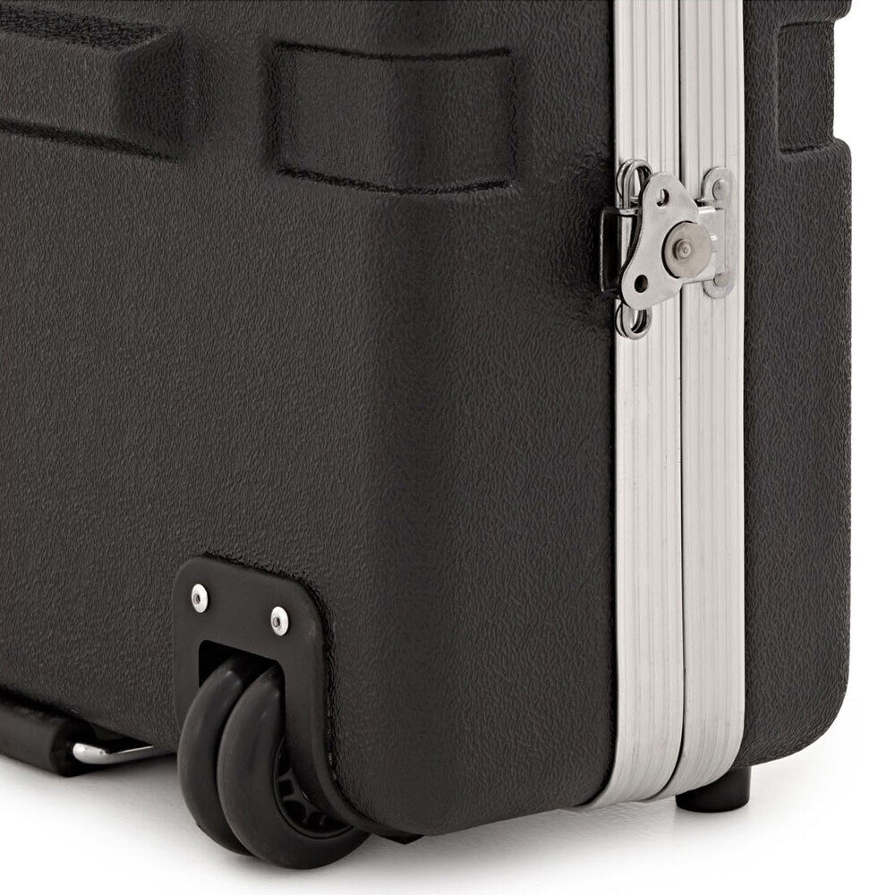 This case is fantastic for just about any 76-key keyboards owing to its fully adjustable interior padding. All the foam is tongue and groove cut, meaning you can chop and change the amount of padding you have at any one of the eight points. This gives full customization allowing you to fit even the most bizarre of keyboards in the case! Two fabric straps hold the keyboard down as well as sufficient padding on the roof of the case for additional protection to control knobs and dials. This keyboard ABS case is really easy to carry to rehearsals and gigs. Featuring a heavy-duty carry handle on each end of the case as well as on the top, the case is really easy and comfortable to hold. As well as this, two high-quality wheels have been built into the frame of the case meaning it can be wheeled around on most surfaces. The Rack case has been constructed from high-quality ABS, which is not only lightweight but extremely strong. This means that it will take any punishment from transporting your keyboard around without causing any damage to your gear. The Aluminium reinforcing plates give extra rigidity. Four twist latches over the front of the case are easy to use and very strong. FEATURES: Heavy Duty ABS Keyboard Case Three Carry Handles and Wheels Adjustable Foam Padding Interior Four Twistable Latches Suitable For Most 76-key Keyboards SPECIFICATIONS: Outer Length: 1378mm Outer Width: 483mm Outer Depth: 178mm Inner Length: 1150 - 1250mm Inner Width: 300 - 420mm Inner Depth: 100 - 150mm Weight: 9kg