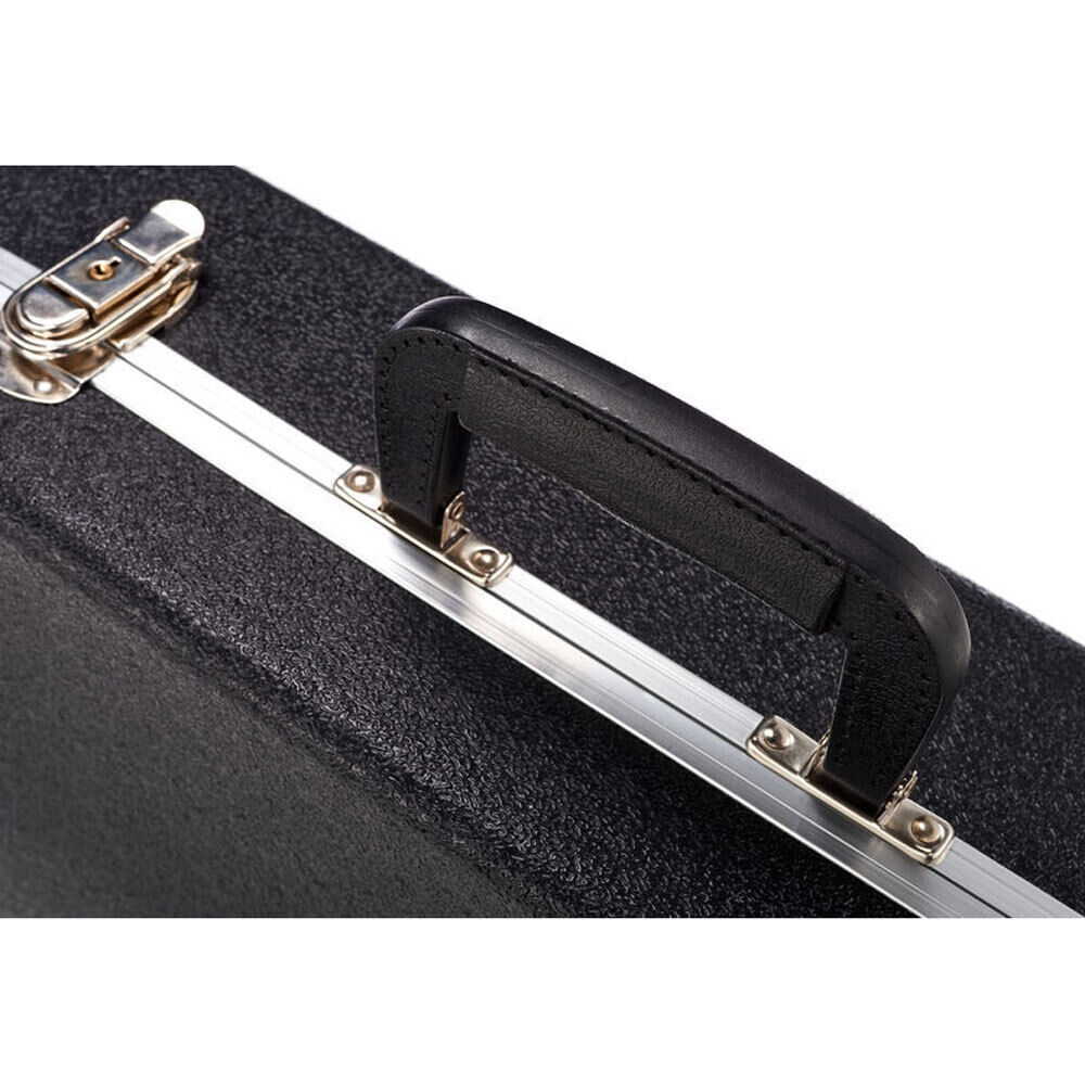 This deluxe molded Mandolin Case is made from the finest eco-friendly ABS plastic with an ultra-strong extruded tongue-and-groove aluminum valance. The interior is created from EPS foam giving ultimate support, then covered in plush to completely protect