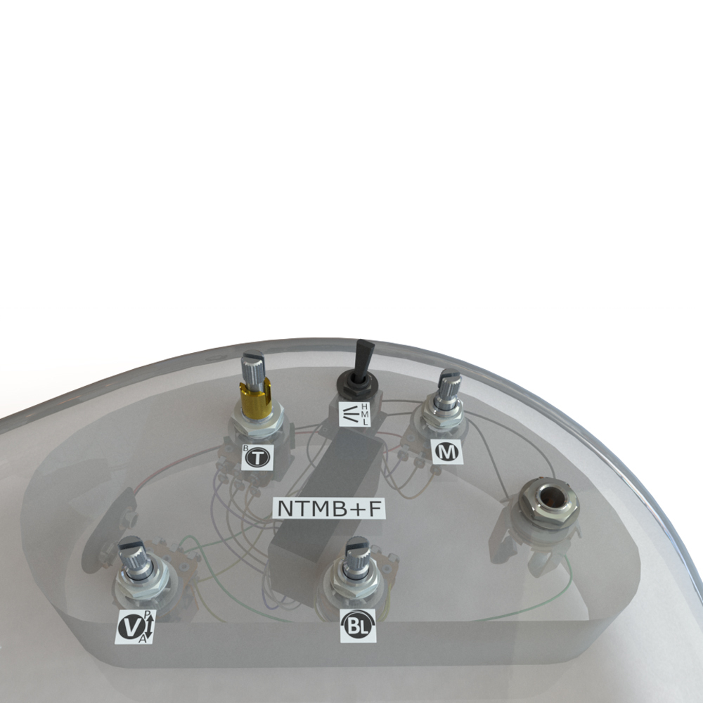 Wired with our NTMB+F pro-level pre-amp and premium audio-quality pots and switches, you''ll have smooth control and be ready for years of rugged use. We include battery clips and an output jack for quick installation. This configuration has a 3-Band EQ,