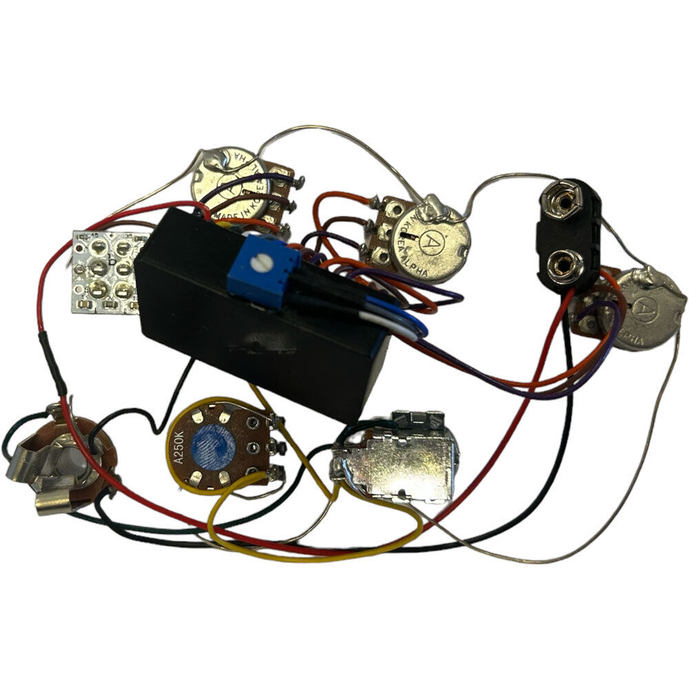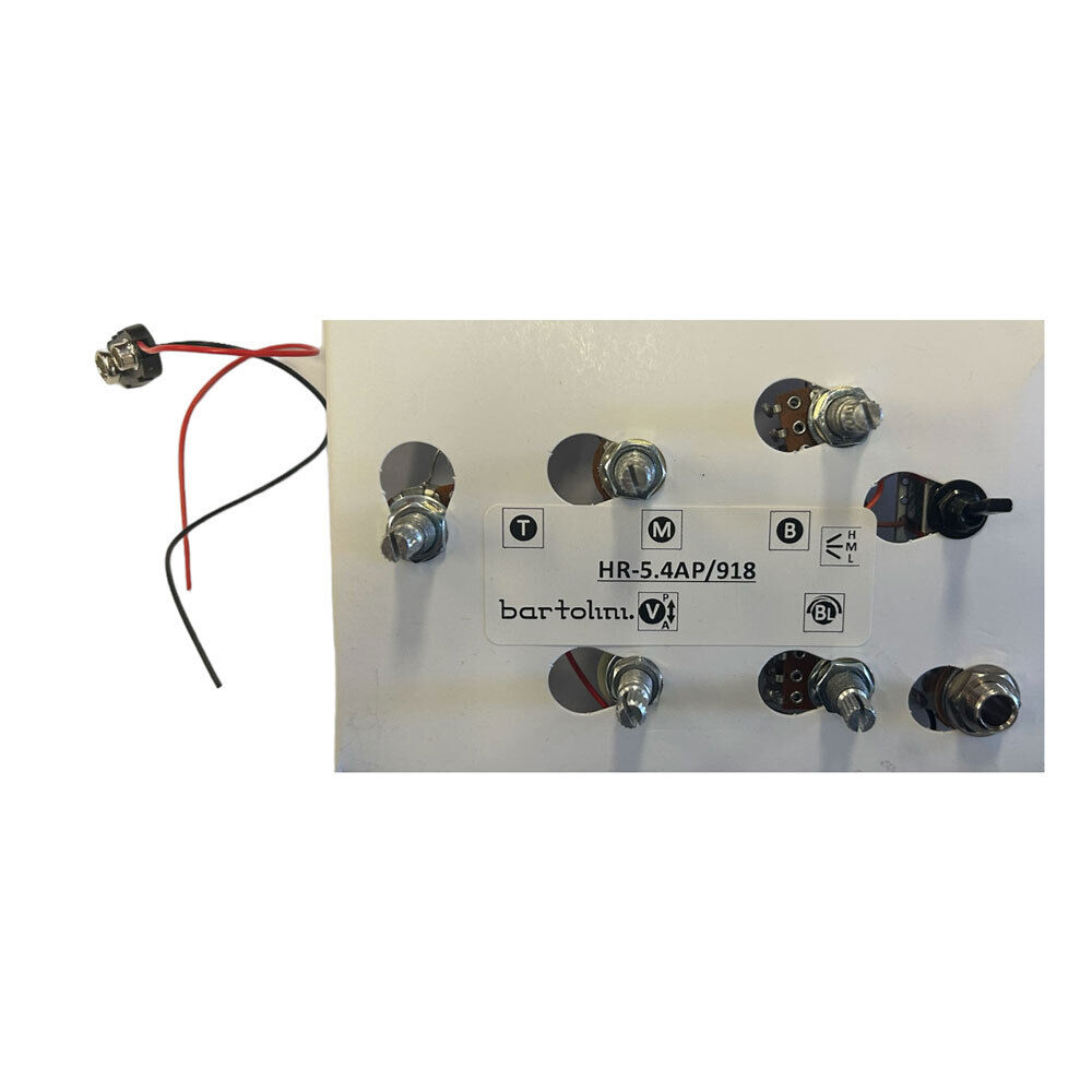 Wired with our NTMB+F pro-level pre-amp and premium audio-quality pots and switches, you''ll have smooth control and be ready for years of rugged use. We include battery clips and an output jack for quick installation. This configuration has a 3-Band EQ, 5 Pots and 1-Toggle: (Volume with Pull-Bypass Switch) (Blend) (Treble) (Mid) [250,500,800Hz Mid Toggle] (Bass) - Active/Passive. Our most popular preamp for decades, the NTMB+F is a 3-band tone control preamp with fully independent Bass, Mid and Treble controls. It is well known to professionals for its very low noise and wide boost and cut range for aggressive control. The voice is clear, transparent, and strong. The treble frequency is set high for maximum available brightness. A professionally pre-wired and fully pre-tested harness saves the time and aggravation of wiring your preamp and pots into your instrument. Wired with our pro-level preamp and premium audio-quality pots and switches, you'll have smooth control and be ready for years of rugged use. We include battery clips and an output jack for quick installation. All the pots are grounded with a wire that can be connected to the cavity shield or simply cut away if not needed in your installation. Everything is pre-soldered with pro-quality pure copper wire that is double tin plated and protected with semi-rigid insulation so it won't flop around in the cavity or degrade over time. We use only professional lead-free solder with non-corrosive flux. Knobs are a personal choice, so they are not included with the harness - except where there is a stacked (concentric) pot, we include a ring knob and center knob since they are not as common. NEED A DIFFERENT CONFIGURATION? To view all Bartolini Pre-Wired Harness setups CLICK HERE . To check availability and RRP, quote the model number you are interested in to the friendly staff at Pro Music Sales - Contact 1300 880 278 or sales@promusicaustralia.com