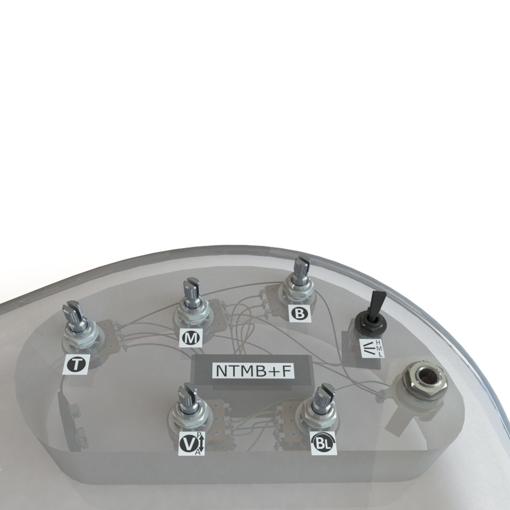 Wired with our NTMB+F pro-level pre-amp and premium audio-quality pots and switches, you''ll have smooth control and be ready for years of rugged use. We include battery clips and an output jack for quick installation. This configuration has a 3-Band EQ,