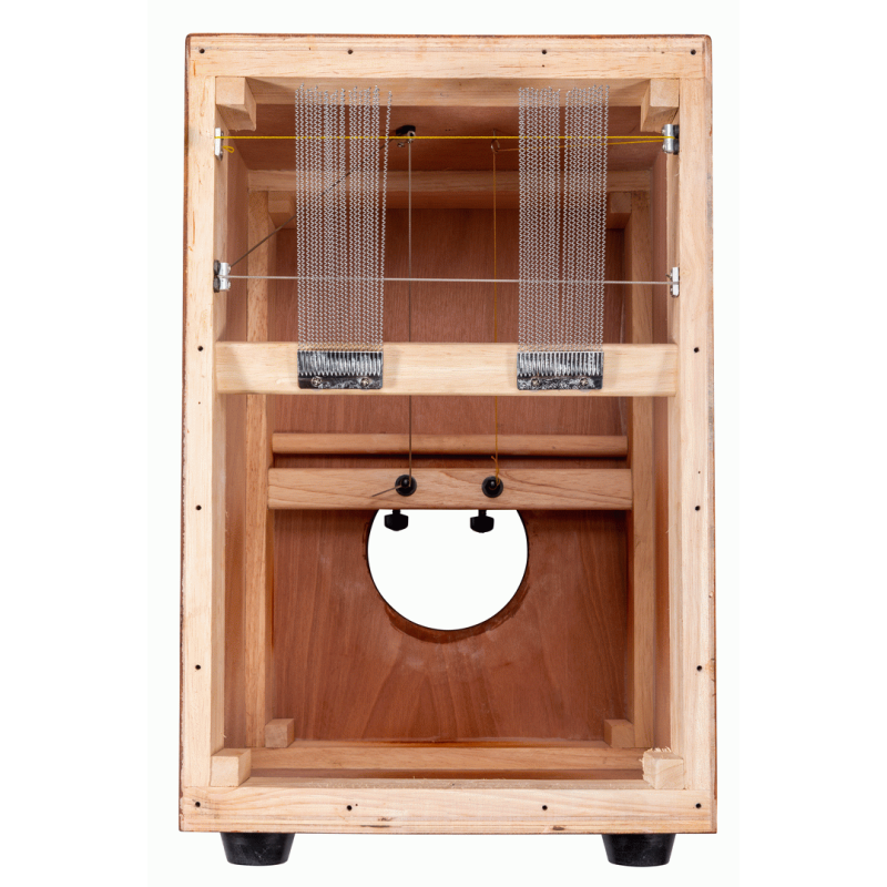 Introducing the CAJ-100W and CAJ-100, multi-type cajons. Designed from the ground up to be played on all four panels, including the back and sides. The sturdy frame structure allows for the use of thin plywood, compared to a traditional cajon, which creates a rich harmonic resonance that will take your performances to the next level. The tonality of each striking surface has been fine-tuned to ensure versatility and expressive power by varying the thickness and number of plywood layers. The resonant cords are snare wires, typically found on a snare drum, which deliver a crisp sound and quick decay. The resonator tension can be adjusted at both the top and bottom of the striking surface. For example, you could tighten the lower pitches and loosen the upper pitches so that different tones are produced when you strike different places, allowing for the use of a brush to deliver maximum playability and expression.Enjoy a brand new artistic experience, harnessing the power and expression of the all-new Sakae CAJ-100 cajon series.The CAJ-100 perfectly convey the delicate nuances transmitted by the player's hands, seamlessly capturing the dynamics and true essence of a rhythm instrument.