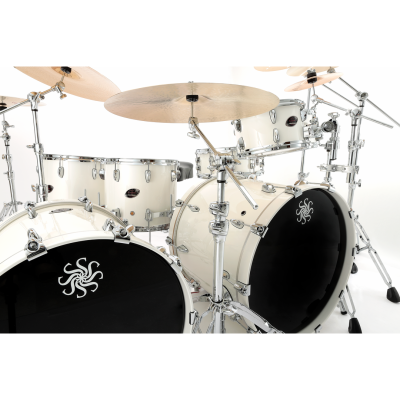 The Long-Awaited Shell Kit from SAKAE OSAKA HERITAGE is Finally Here. Taking inspiration from the heritage and concept of the esteemed Sakae “Almighty” drum kit admired by drummers around the world, Evolved, as its name suggests, marks the start of a new era in drums. The Evolved kit uses specially selected superior Maple wood that provides a perfectly balanced sound, rich with musical full harmonics. The Evolved kit builds upon the ingredients of the respected “Almighty” legacy and then refines the details even further. The number of plies, thickness of the wood and the exterior design as well as enhancing many other elements, all combining to further refine the sound, allows Evolved to deliver the best sounding SAKAE kit to date. This Osaka Heritage Evolved Maple 4-piece shell pack configuration in Stunning Pearl White Lacquer and includes a 20x16 Kick Drum with Kick Drum Mount, 10x7 Tom, 12x7 Tom, 14x13 Floor Tom. Also included is 1x WTH-102 Tom Holder and 2x WLC-102 Tom Arms. Sound Above All – Superior sound creation is at the heart of development for all SAKAE instruments. This is especially clear with the Evolved shell kit as superior sound creation has driven each and every design decision in order to achieve the best conceivable result – and unmatched sonic palette. Every part of the Evolved kit has been meticulously designed with a very particular vision and sound in mind, every detail is judged carefully to achieve the best possible result. Finishes – The exterior of the Sakae drum kit should reflect the excellence of the sound it delivers. Its beauty is an expression of the sonic attention to detail. SAKAE is famous for stunningly unique and elegant finishes and EVOLVED builds on this legacy and offers kits in 6 colour variation, a mixture of some of the most commonly requested colours, as well as some new and exciting finishes! - Lazurite Gold - Turquoise Champagne - Destroyer - Pearl White - Real Black - Wine Shell Specifications: Kick Drum (7ply 7.2mm) – Reduced total thickness while adding plies for higher sound pressure. Floor Toms (7ply 6.4mm) – Increased thickness for a fat low end tone. Rack Toms (6ply 5.6mm) – Reduced plies and total thickness for clearer tone and punch. Limited Production – Sakae artisans producing their craft at this level are key to the incredible quality which Evolved delivers. Sakae will never compromise on quality by sacrificing standards to increase production quantities. Only a few hundred Evolved kits will be produced each year in order to ensure that each and every kit is of the highest quality.