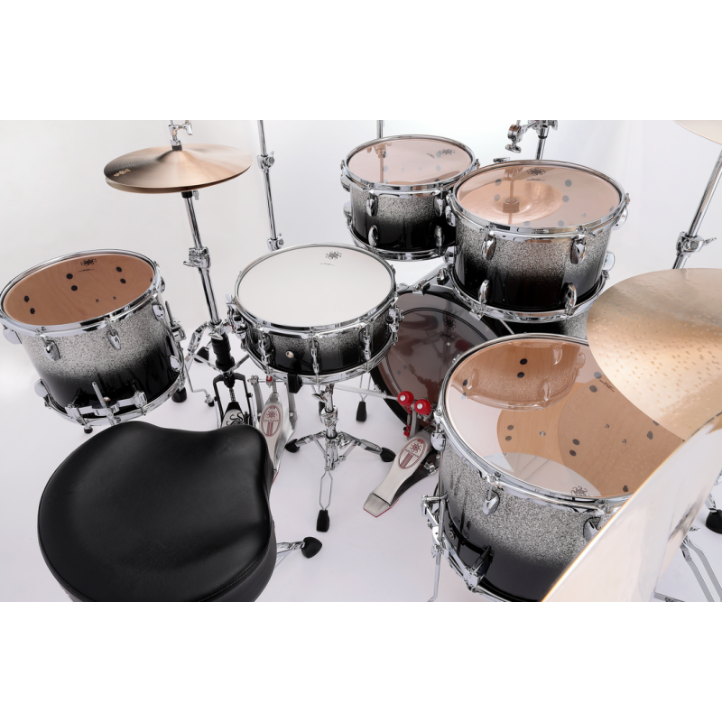 The Long-Awaited Shell Kit from SAKAE OSAKA HERITAGE is Finally Here. Taking inspiration from the heritage and concept of the esteemed Sakae “Almighty” drum kit admired by drummers around the world, Evolved, as its name suggests, marks the start of a new era in drums. The Evolved kit uses specially selected superior Maple wood that provides a perfectly balanced sound, rich with musical full harmonics. The Evolved kit builds upon the ingredients of the respected “Almighty” legacy and then refines the details even further. The number of plies, thickness of the wood and the exterior design as well as enhancing many other elements, all combining to further refine the sound, allows Evolved to deliver the best sounding SAKAE kit to date. This Osaka Heritage Evolved Maple 4-piece shell pack configuration in Stunning Destroyer Lacquer finish (Silver to Black Sparkle Fade) includes a 22x18 Kick Drum, 10x7 Tom, 12x7 Tom, 16x14 Floor Tom. Also included is 1x WTS220D X-Calibur Double Tom Stand. Sound Above All – Superior sound creation is at the heart of development for all SAKAE instruments. This is especially clear with the Evolved shell kit as superior sound creation has driven each and every design decision in order to achieve the best conceivable result – and unmatched sonic palette. Every part of the Evolved kit has been meticulously designed with a very particular vision and sound in mind, every detail is judged carefully to achieve the best possible result. Finishes – The exterior of the Sakae drum kit should reflect the excellence of the sound it delivers. Its beauty is an expression of the sonic attention to detail. SAKAE is famous for stunningly unique and elegant finishes and EVOLVED builds on this legacy and offers kits in 6 colour variation, a mixture of some of the most commonly requested colours, as well as some new and exciting finishes! - Lazurite Gold - Turquoise Champagne - Destroyer - Pearl White - Real Black - Wine Shell Specifications: Kick Drum (7ply 7.2mm) – Reduced total thickness while adding plies for higher sound pressure. Floor Toms (7ply 6.4mm) – Increased thickness for a fat low end tone. Rack Toms (6ply 5.6mm) – Reduced plies and total thickness for clearer tone and punch. Limited Production – Sakae artisans producing their craft at this level are key to the incredible quality which Evolved delivers. Sakae will never compromise on quality by sacrificing standards to increase production quantities. Only a few hundred Evolved kits will be produced each year in order to ensure that each and every kit is of the highest quality.