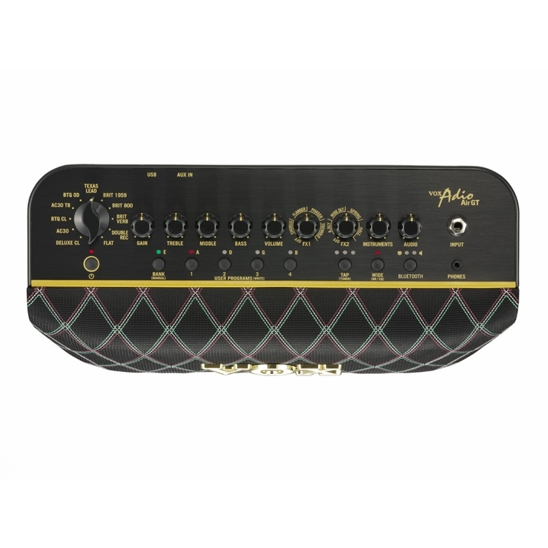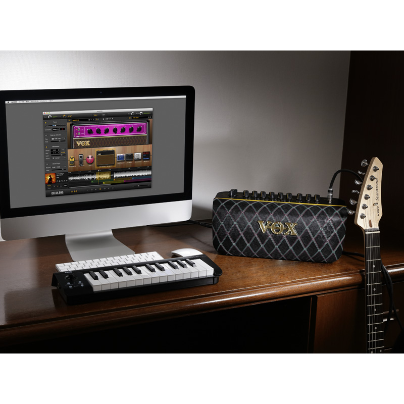 Though it is compact and lightweight, the Adio is equipped with a high-wattage power amp boasting 50W of stereo output. It delivers a startling sense of volume that outperforms other amps in its class. The 2 x 3”stereo speaker system makes for an incredible playing and listening experience. Because it is capable of such high-output, the Adio is equally effective as an at-home practice amp as it is a full-fledged performing amp.