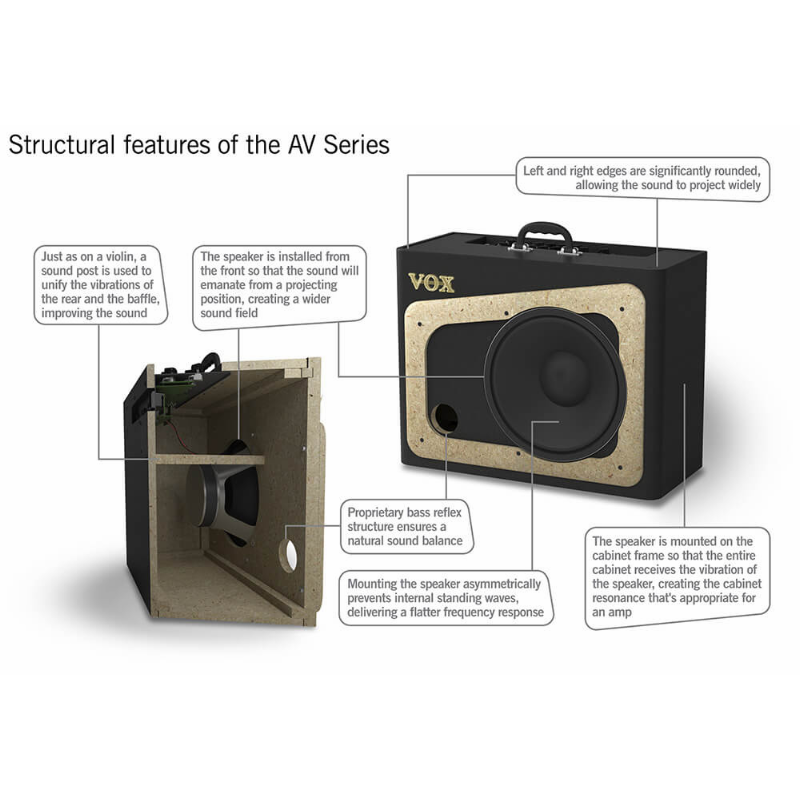 Perfect for the studio or a small club, the AV30 is a fully-featured analog amp that packs decades worth of tones into a compact package. The AV30’s unique multi-circuit analog pre-amp utilizes a 12AX7 tube to provide a full complement of clean, crunch, o