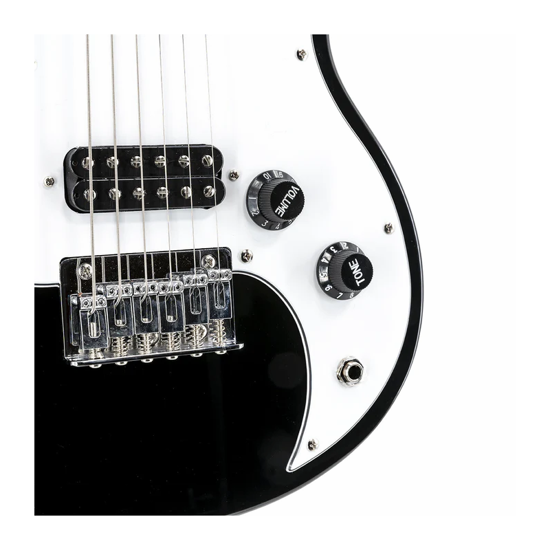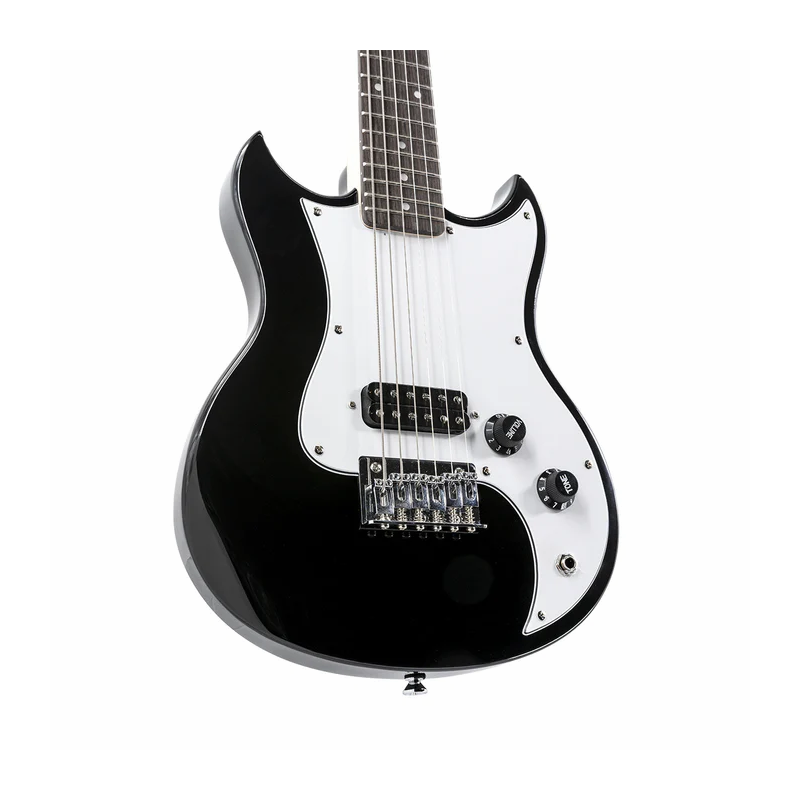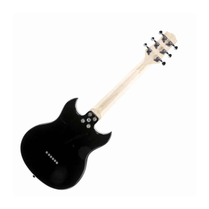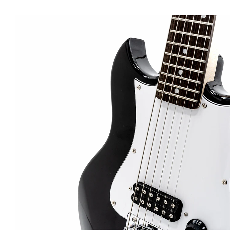 The SDC-1 mini is a quality mini electric guitar that gives the same feel and sound as a full-size guitar. Unlike other mini size guitars, the pitch, tension, and tuning of each string is almost the same as a full-size guitar thanks to clever use of heavy gauge strings and ratio tuning machine heads.