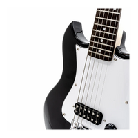 The SDC-1 mini is a quality mini electric guitar that gives the same feel and sound as a full-size guitar. Unlike other mini size guitars, the pitch, tension, and tuning of each string is almost the same as a full-size guitar thanks to clever use of heavy