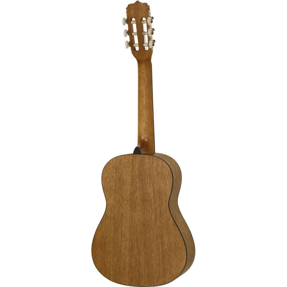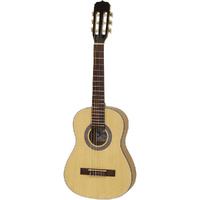 This Fiesta Classical / Nylon-string guitar is made by one of the most reputable guitar companies, Aria Guitars. It's the perfect instrument for anybody who wants to learn to play the guitar. It is extremely well made to ensure your utmost success as you begin your journey to a very satisfying pastime. FEATURES: Traditionally styled 1/2 size body design Spruce Top Meranti Back & Sides Neck: Meranti Fretboard: Ironwood Frets: 19 Nut Width: 52mm Scale: 530mm Bridge: Ironwood Hardware: Chrome Finish: Natural Matte