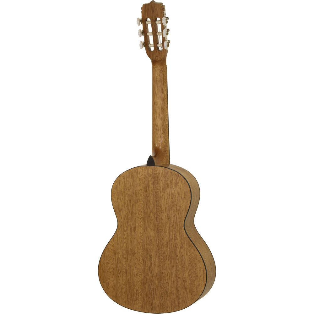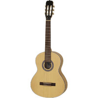 This Fiesta Classical / Nylon-string guitar is made by one of the most reputable guitar companies, Aria Guitars. It's the perfect instrument for anybody who wants to learn to play the guitar. It is extremely well made to ensure your utmost success as you begin your journey to a very satisfying pastime. FEATURES: Traditionally styled 3/4 size body design Spruce Top Meranti Back & Sides Neck: Meranti Fretboard: Ironwood Frets: 19 Nut Width: 52mm Scale: 580mm Bridge: Ironwood Hardware: Chrome Finish: Natural Matte
