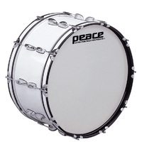 This is a 20-Lug Marching Bass Drum in White (24 x 10") from the Peace Deluxe Cadet Series Marching Percussion line. The CADET series is unquestionably the best-selling PEACE parade line. The maple/mahogany shells and hi-tension lugs guarantee exceptional
