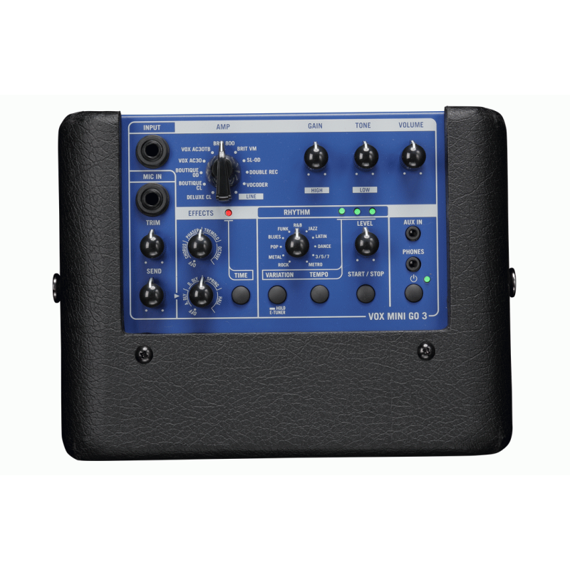 The VOX Mini GO amp series is back in a range of fresh, earthy, organic colors, inspiring users to venture outdoors and unleash their musical creativity on the GO. Lightweight, compact and can be powered by a mobile battery ! These amps offer powerful and realistic amp models, a vocoder for talking modulation effects, many effects, a mic input, AUX input, a headphone jack and a rhythm machine that can play back patterns from many genres… all as standard features. The new outdoor-themed colors offer fresh and organic tones, making them the perfect amp for both outdoor adventures and indoors jamming. VOX MINI GO 3: Equipped with a 3W output and a 5-inch speaker, this is the most compact model with a high- quality built-in rhythm machine. It's perfect for enjoying playing along with rhythms at home or casually taking it outdoors.