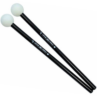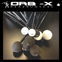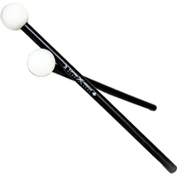 OrB-X are percussion mallets built for drummers. The Orb-X45W has a 45mm white mallet head on a black maple drum stick. Timpani mallets too often are destroyed on cymbals, and felt mallets can be hard and heavy, making it difficult to articulate intricate patterns. The Orb-X mallet head weighs less than a gram and comes in 3 diameters: 25mm, 35mm and 45mm (in white or black). The smaller sizes compress more and so have a softer sound. The larger sizes compress less and have more contact sound. They all sound great on drums, cymbals, congas, and bongos. Because they are so light, drummers can play rhythmic patterns that were not practical with standard timpani mallets. These are great for Orff instruments as well. Dimensions (L x W x H): 450 x 10 x 10 mm