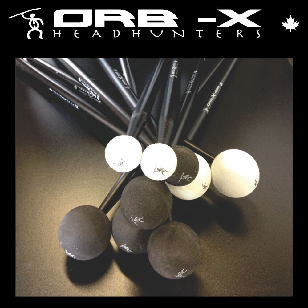 OrB-X are percussion mallets built for drummers. The Orb-X45W has a 45mm white mallet head on a black maple drum stick. Timpani mallets too often are destroyed on cymbals, and felt mallets can be hard and heavy, making it difficult to articulate intricate