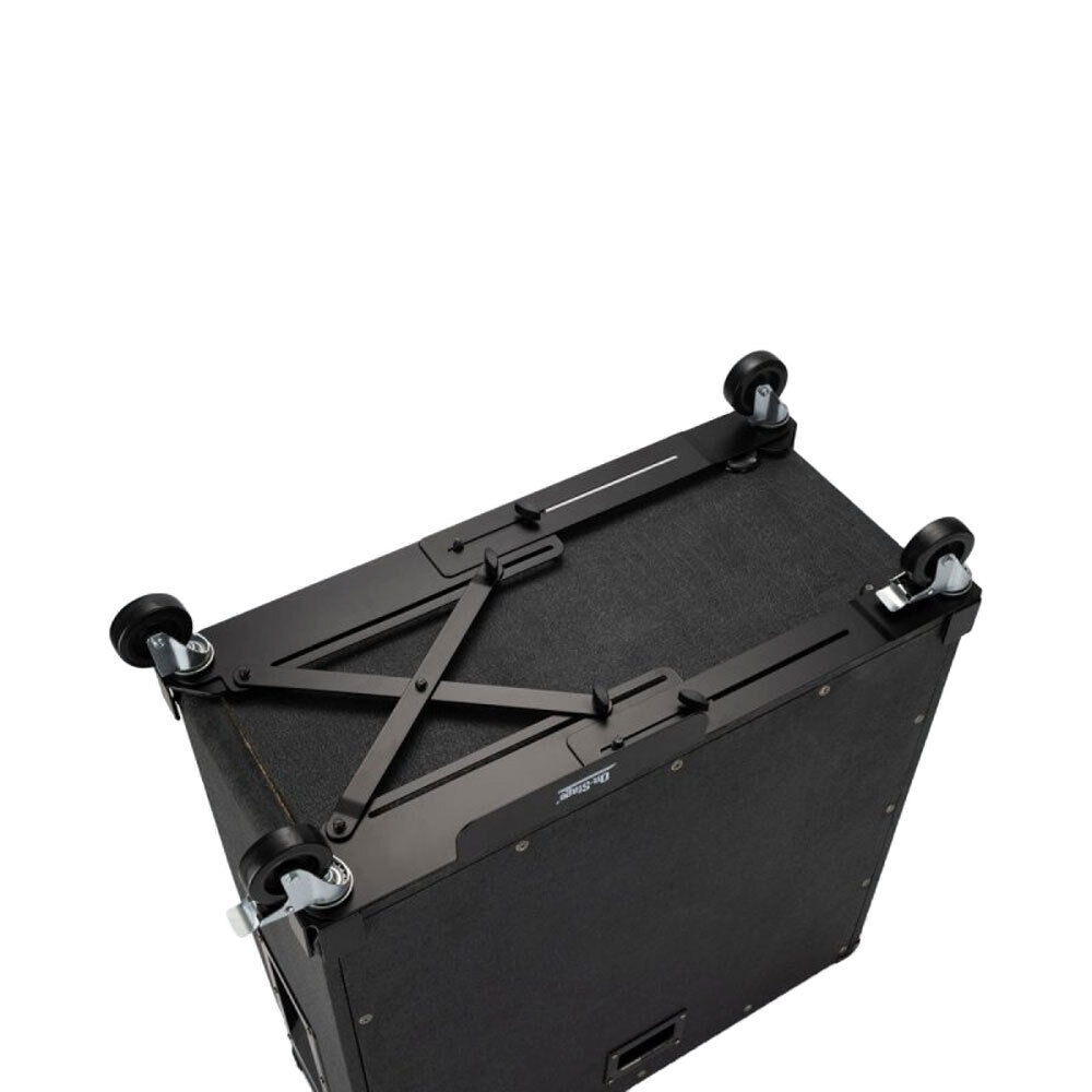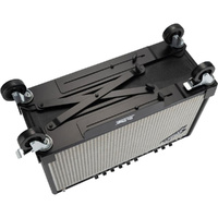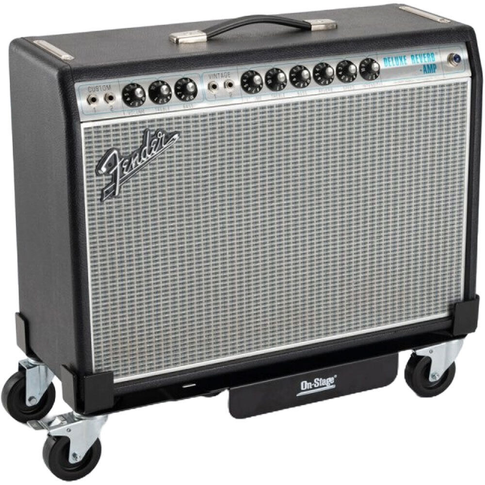 The AG5000 Amp Glider adds casters to your amp without the need for drilling holes or making modifications to the amp cabinet, giving your amp all the benefits of a rolling amp while maintaining the amp's collectibility and value. And whenever you want to return your amp to its original stationary state, it's as easy as loosening a few knobs. To enable a secure fit for a wide range of vintage and modern amps and speakers, the frame adjusts in length and width, securely clamping the corner brackets to the base of the cabinet. Four tightening knobs (two each for the length and width) lock in your size settings. Padding on the corner brackets provides traction that grips the amp, keeping the Amp Glider attached even when the amp is lifted-a major upgrade over an old-fashioned dolly or rolling cart. Additionally, the padding protects your amp's finish from dents and scratches. Swiveling casters roll smoothly and enable agile, unrestricted steering, making it easy to maneuver through streets, venues, and studios during load in, load out, and setup. Solid wheels that never go flat and steel caster rigs deliver dependable mobility. When the amp is parked for storage, practice, performance, or recording, locks on the casters keep it firmly and safely in place. The heavy-duty frame and cross braces are constructed of steel for strength and stability to ensure reliable support for your equipment. Yet the frame is also light in weight, maintaining the amp's ability to be lifted in situations where rolling is not possible, such as on stairs. Durably finished in classic black, the Amp Glider looks great, resists chips and scratches, and blends into your livestream, stage, or studio setup to add to a professional presentation. When not in use, the frame folds down for compact storage and efficient transportation. FEATURES: Adjusts in length and width to fit and grip your amp Delivers strength and stability to reliably support your gear Enables you to roll and firmly park a wide range of amps and speaker cabinets Padded contact points protect your amp's finish Puts your amp on casters with no drilling or modification of the amp SPECIFICATIONS: Finish: Black Frame Construction: Steel Height: 4" Length Adjustment: 22" - 29.5" Weight Capacity: 63 kg (140 lbs) Width Adjustment: 7.5" - 14"