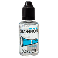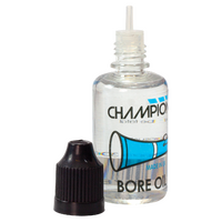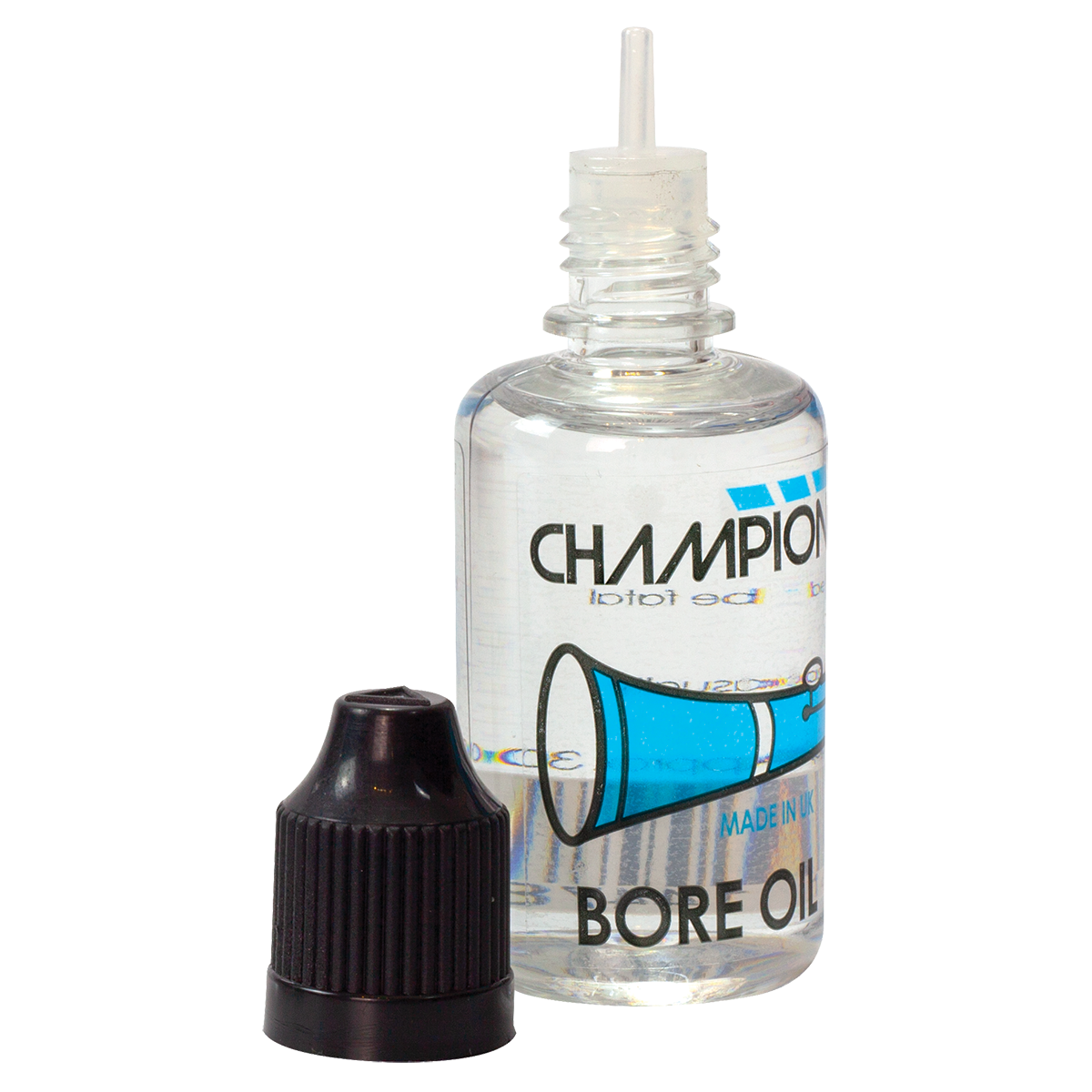 Champion Bore Oil - 30ml Bottle. Bore oil developed and produced in the U.K. to protect your wooden instrument from cracks or warping, use on your instrument bore to keep it in optimal condition and protect against the elements. Made in the UK - European Safety Standard compliant - Odourless - L ong-lasting - Leaves no residue - T hin nozzle dispenser - C hild safety cap.