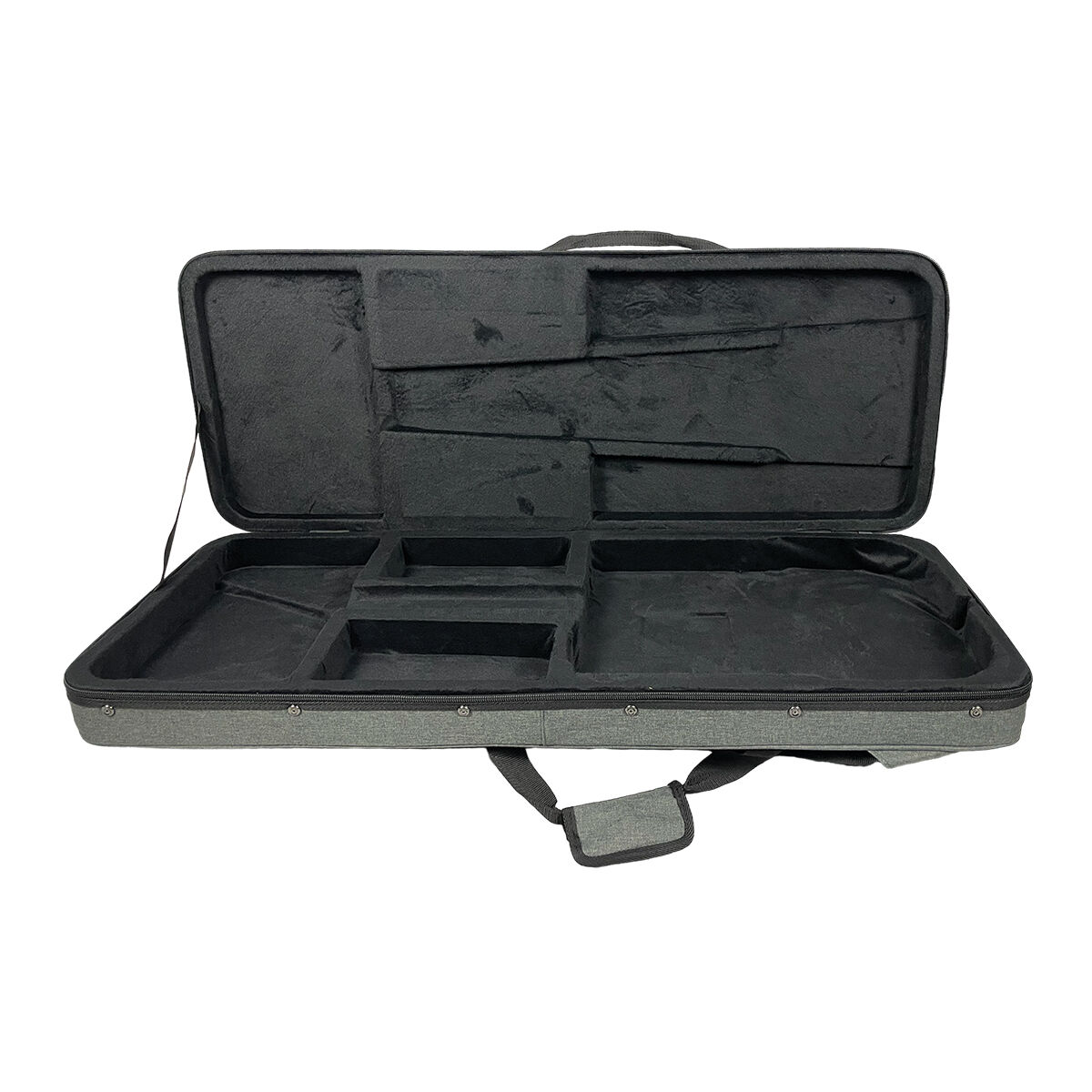 DCM FOAM CASES Lightweight moulded foam case Grey nylon cover Black plush velvet inside 1x outside pocket 2x shoulder straps included Download case size guide here .