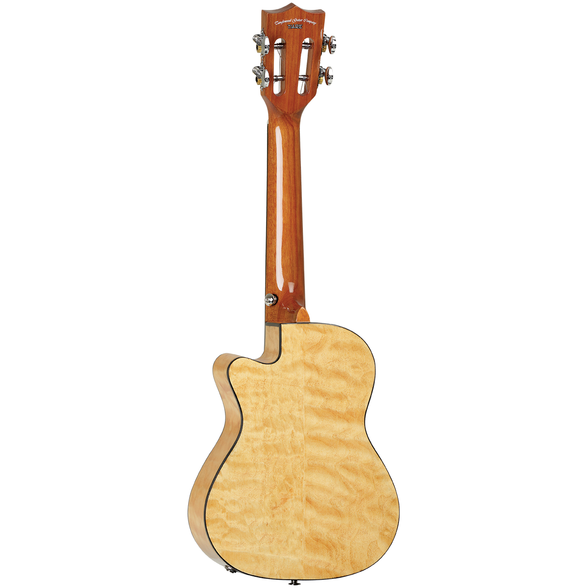 TIARE SERIES UKULELE The all new Tanglewood Tiare range takes inspiration from the lush, rare forests of the South Pacific. A huge new range involving a variety of beautiful timbers, there is a ukulele to suit everyone! And just introduced - the all new Traveller Bamboo Guitar! Our biggest design feature is the Tiare arched backs, for a truely authentic ukulele. The range covers a multitude of deluxe timbers including Flame Mahogany, Black Walnut, Spruce, Koa, Spalt Maple, Cedar, Figured Ovangkol & Figured Pacific Walnut, to name a few. Other features include Supernylgut Aquila strings, laser etched & abalone rosettes and premium gloss & satin finishes. TUT29 E SHAPE: Concert Cutaway TOP: Quilted Maple BACK: Quilted Maple SIDES: Quilted Maple FINGERBOARD: Eboncore BRIDGE: Eboncore FINISH: Tennessee Honey Gloss EQ: Tanglewood TQ3 STRINGS: D'Addario Ukulele GIG BAG: Padded Gig Bag SKU: TWT29E RANGE: Tiare Ukuleles UPC: 819907021649 Please Note: Specifications are subject to change at any time. Please refer to https://www.tanglewoodguitars.co.uk/